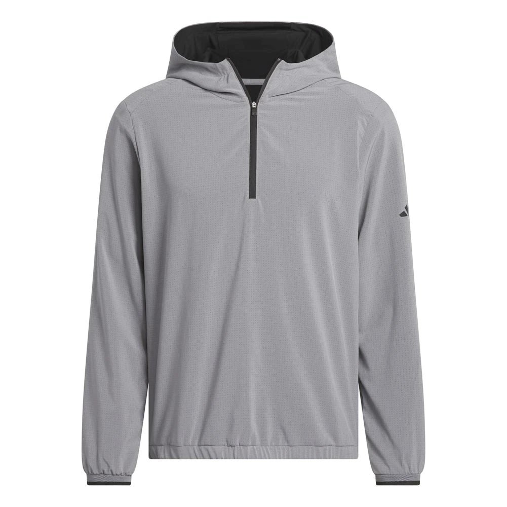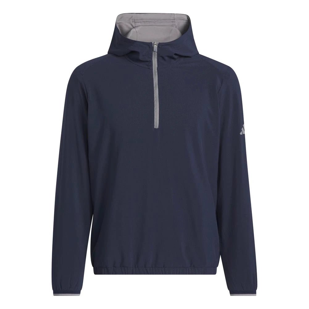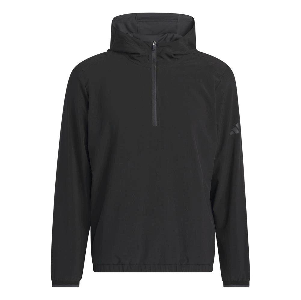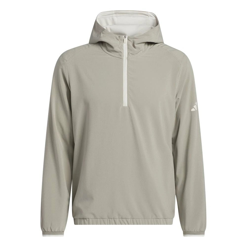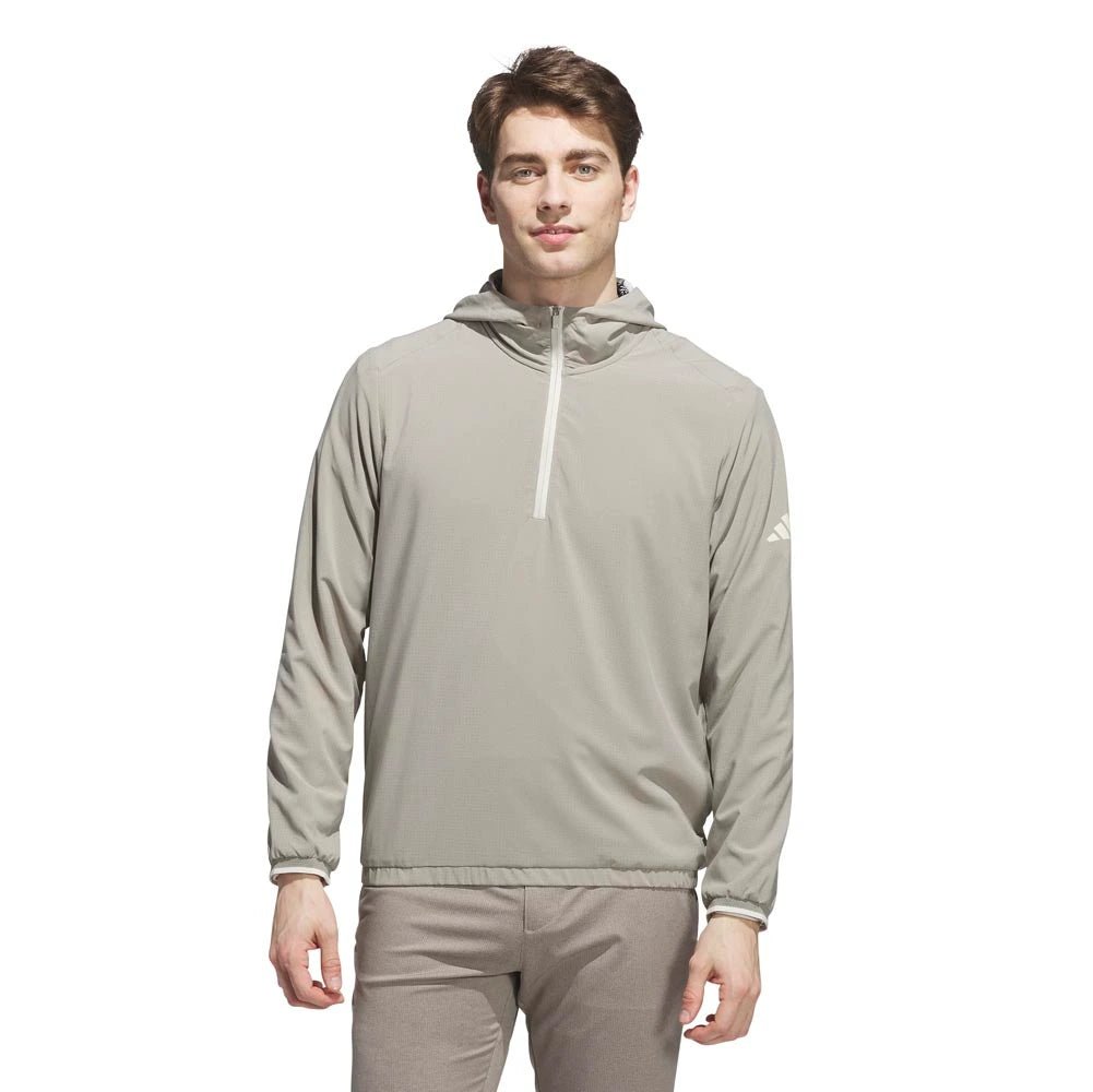 Layer up and focus on your swing. This Adidas golf anorak jacket balances athletic style and performance for the course. A regular fit and light stretch offer full mobility for clean drives and focused putts. A half-zip and drawcord-adjustable hood let you adjust the look.