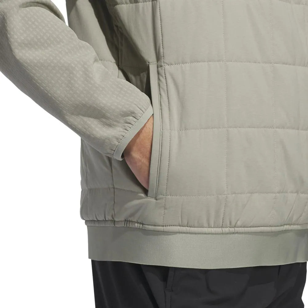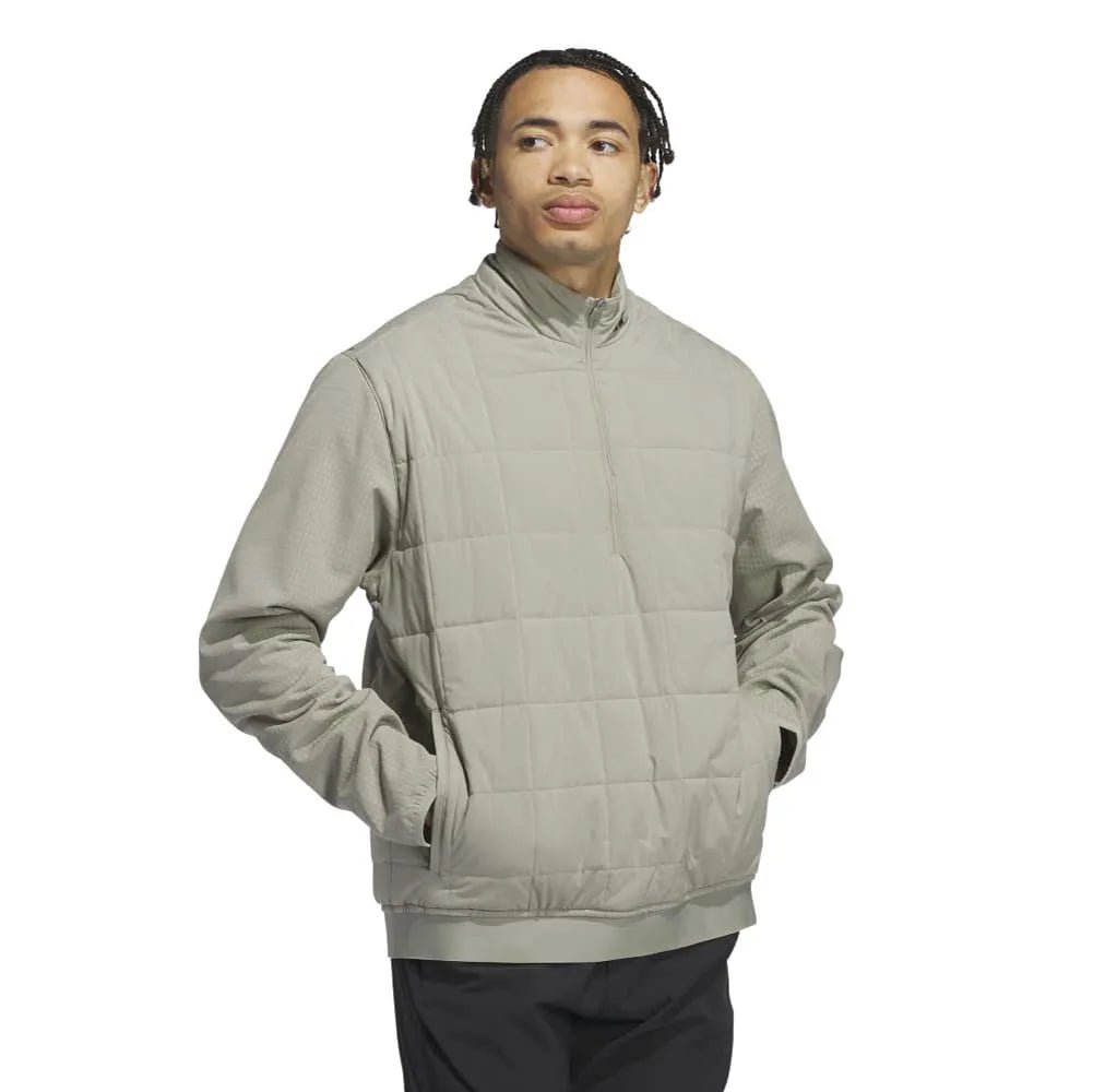 Meet the challenge of transitional weather in this adidas golf pullover. The quilted construction feels cozy when it's cold, and WIND.RDY technology blocks the gusts so you can focus. When light showers hit, a durable water-repellent finish wards them off so you stay dry as you play through.