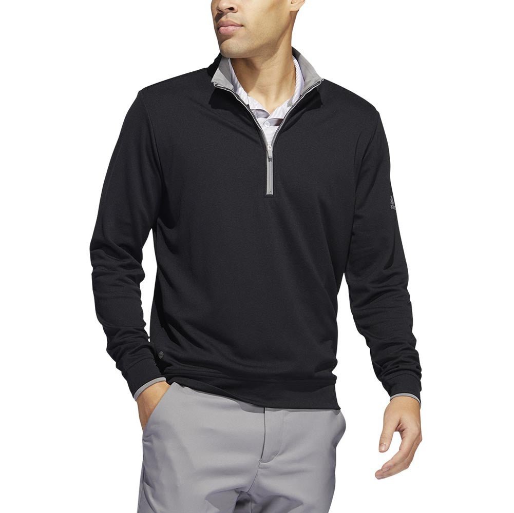 Add a layer of warmth for cool-weather rounds. This men's adidas golf pullover is made with soft, lightweight knit fabric. Moisture-absorbing AEROREADY keeps you dry. Made with a series of recycled materials, and at least 70% recycled content, this product represents just one of our solutions to help end plastic waste.