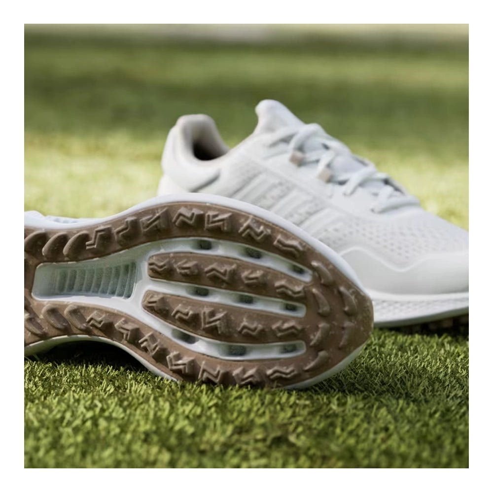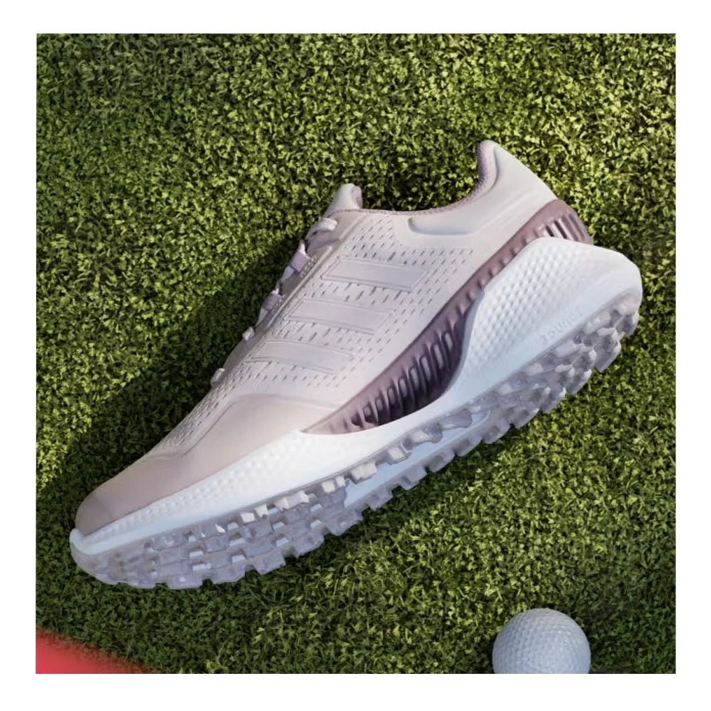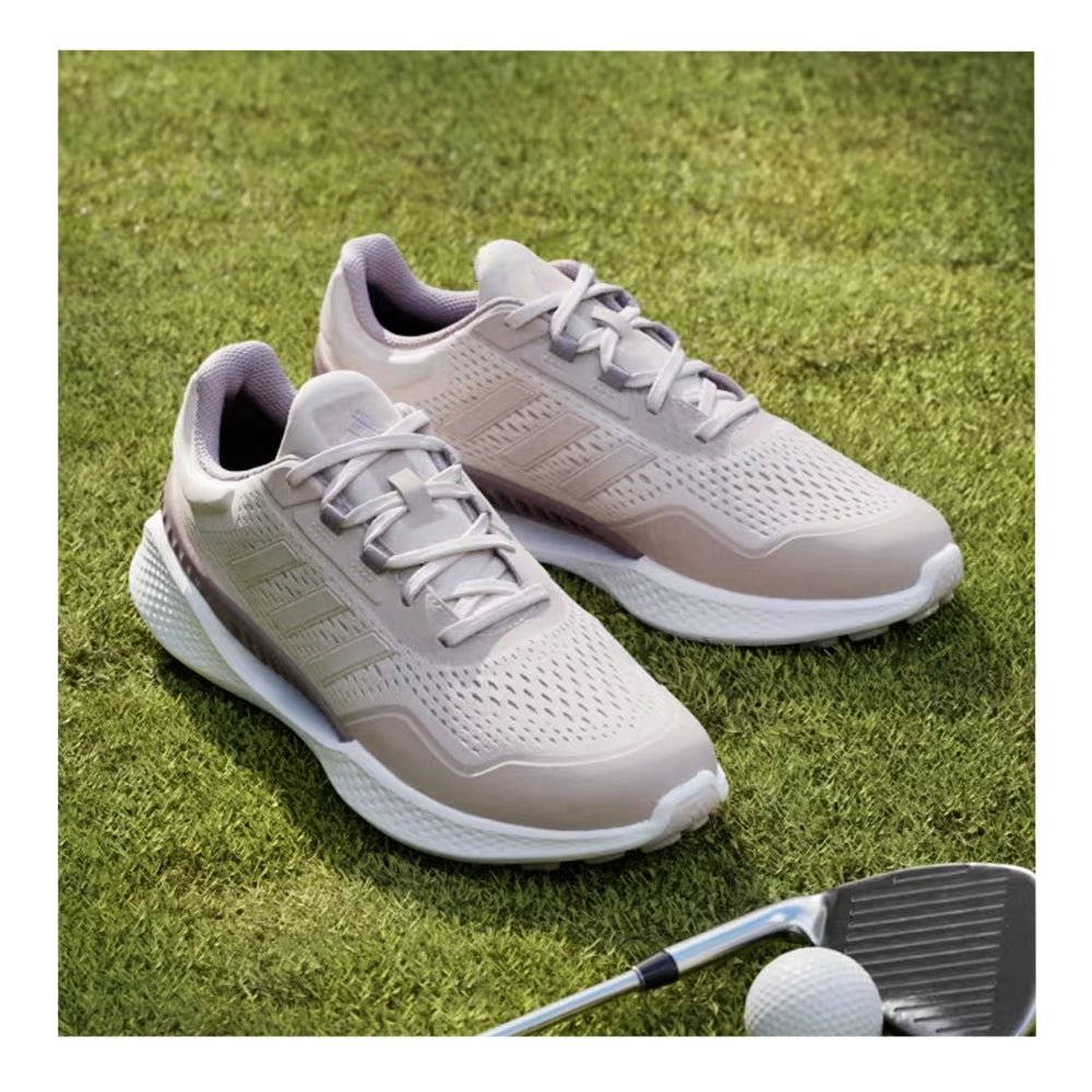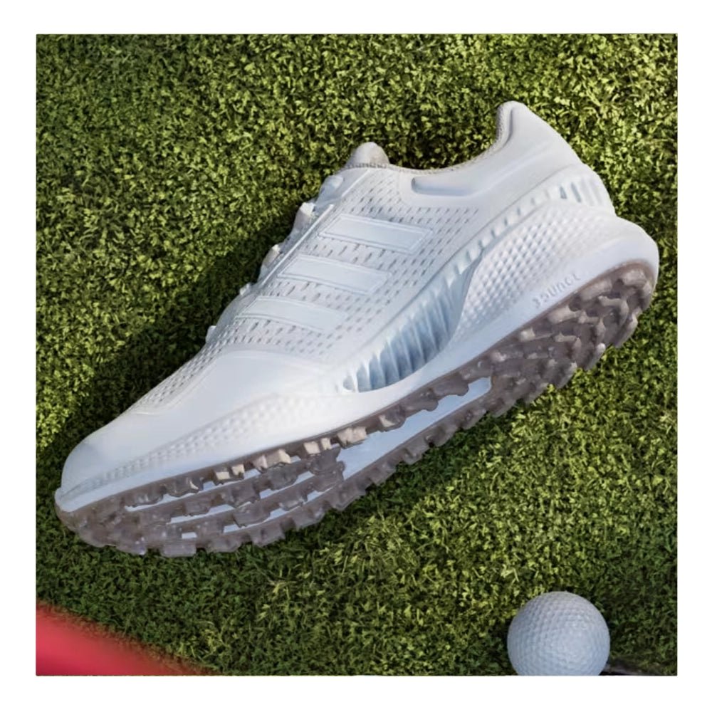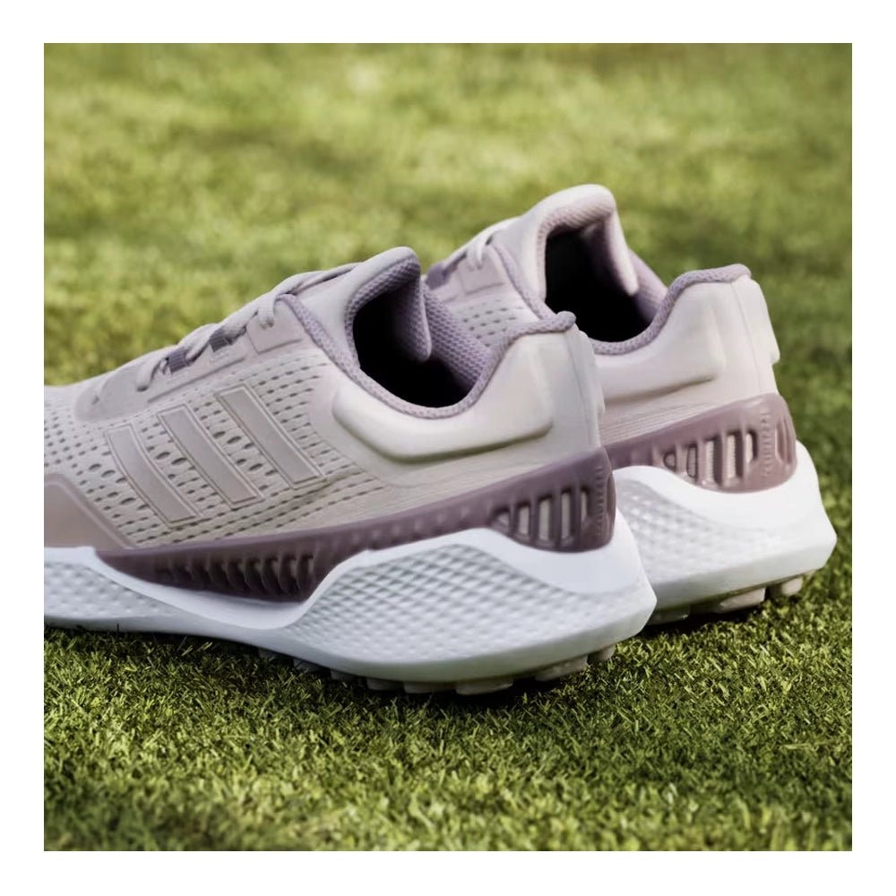 Cool and comfortable wins the day. These golf shoes combine a breathable upper and vented shank to keep your feet cool and through hot, humid days on the course. A women's-specific fit complements adidas Bounce midsole cushioning for the distraction-free comfort to be on your feet all round and all day long. A spikeless outsole adds go-anywhere versatility for smooth transitions beyond the course.