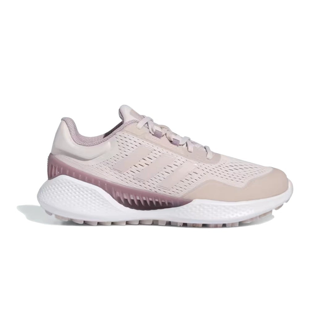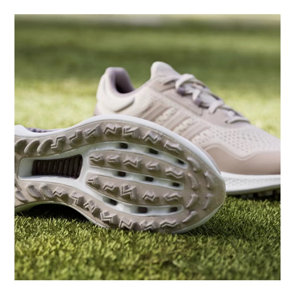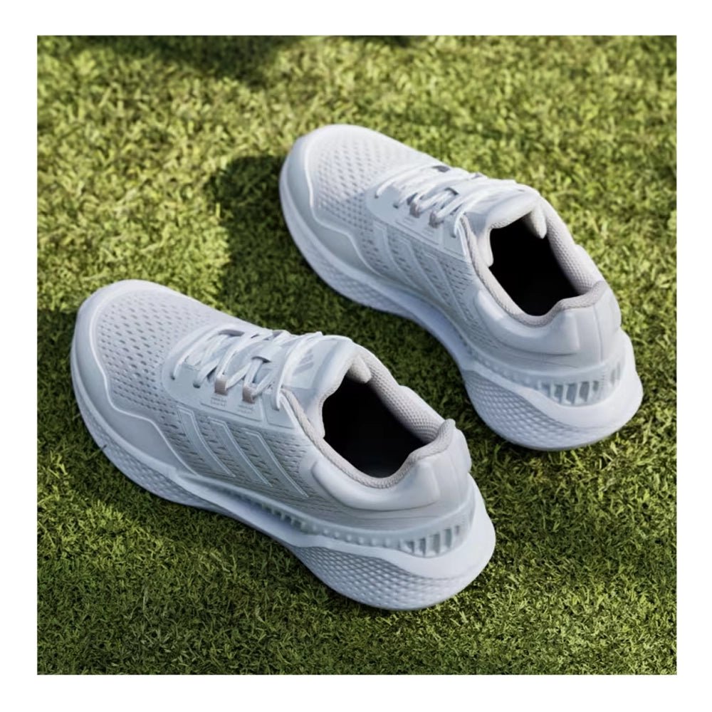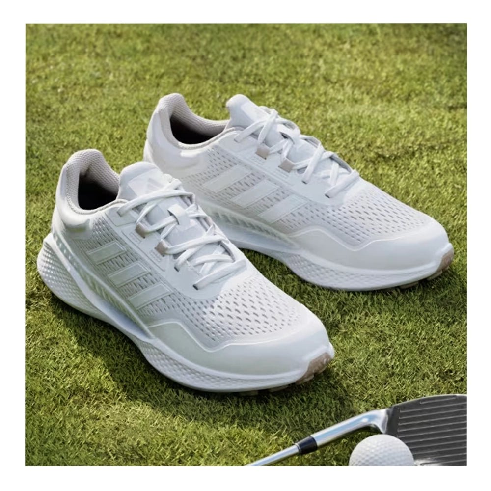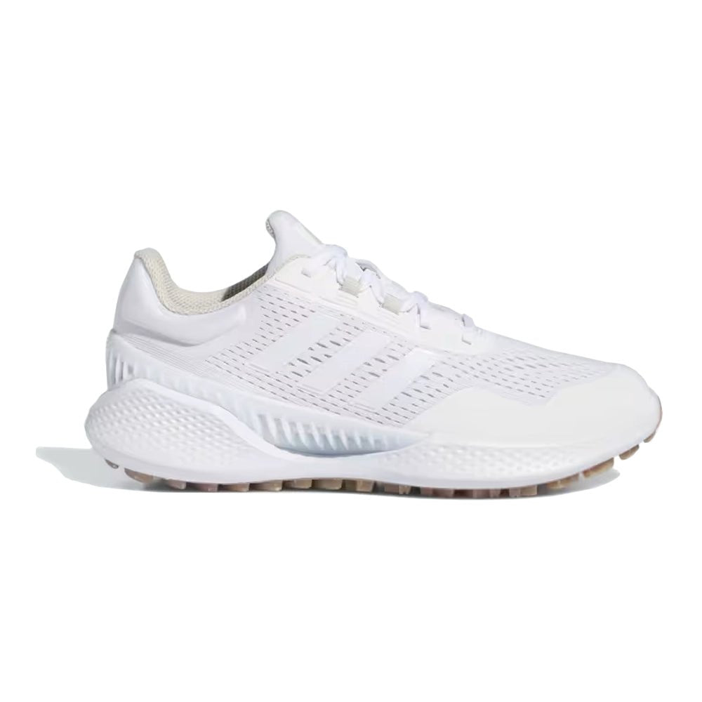 Cool and comfortable wins the day. These golf shoes combine a breathable upper and vented shank to keep your feet cool and through hot, humid days on the course. A women's-specific fit complements adidas Bounce midsole cushioning for the distraction-free comfort to be on your feet all round and all day long. A spikeless outsole adds go-anywhere versatility for smooth transitions beyond the course.