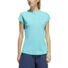 Play through the heat in comfort in this women's adidas golf shirt. Moisture-absorbing AEROREADY keeps you dry from tee-off to final putt. The low-profile neck and shaped hem give it modern style. This garment is made with high-performance recycled materials and contains a minimum of 60% recycled content.