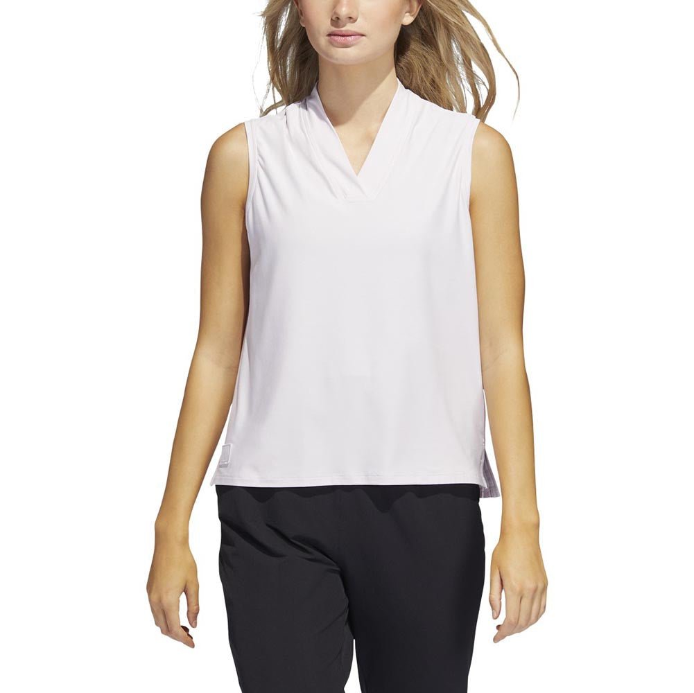 This women's adidas sleeveless golf polo is made for wearing on or off the course. The soft, drapey fabric has built-in sun protection and plenty of stretch for flexibility. This garment is made with high-performance recycled materials and contains a minimum of 60% recycled content.