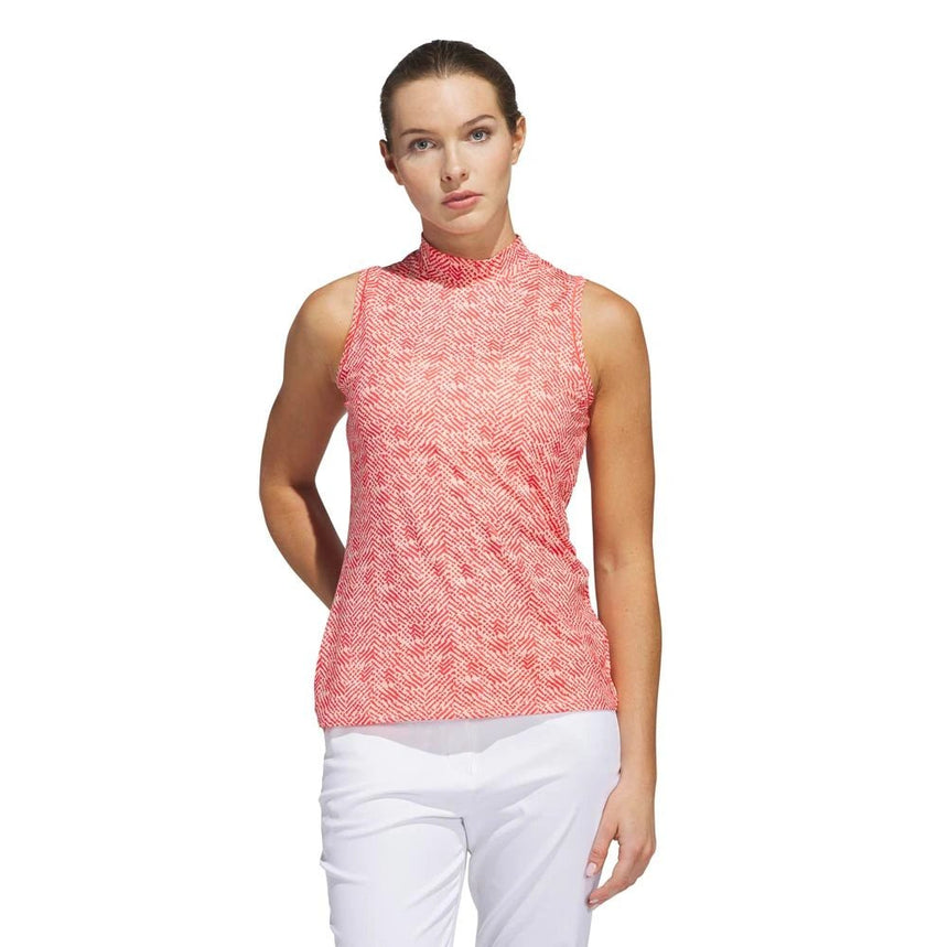 Elevate your golf wardrobe with the stylish and performance-driven Adidas Women's Ultimate365 Mock Neck Golf Polo. Designed for full mobility and comfort, this sleeveless polo combines modern design with functionality, offering a sleek mock neck and a subtle allover print for a refined, yet sporty look. Whether you're on the course or off, this polo offers the flexibility to move freely while maintaining a stylish edge.