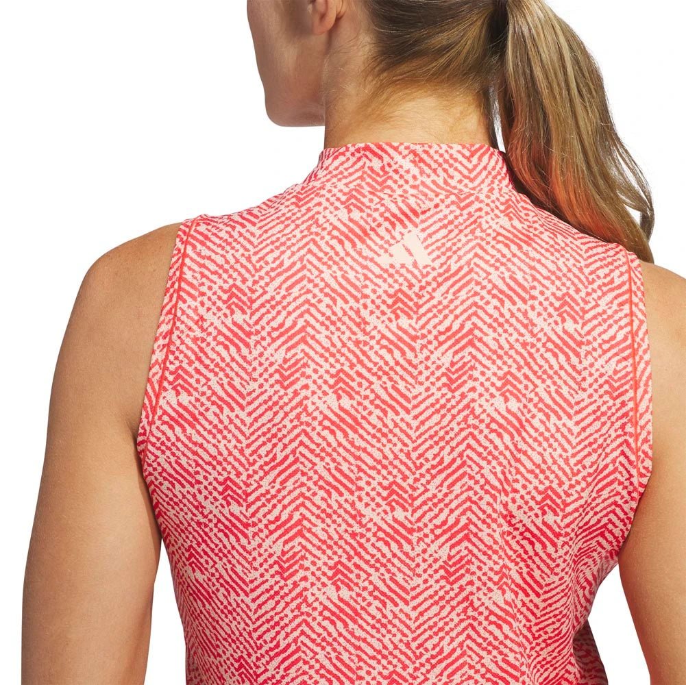 Elevate your golf wardrobe with the stylish and performance-driven Adidas Women's Ultimate365 Mock Neck Golf Polo. Designed for full mobility and comfort, this sleeveless polo combines modern design with functionality, offering a sleek mock neck and a subtle allover print for a refined, yet sporty look. Whether you're on the course or off, this polo offers the flexibility to move freely while maintaining a stylish edge.