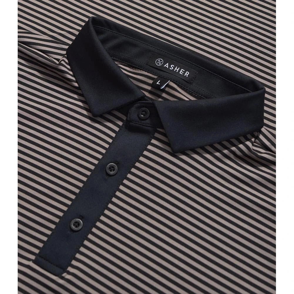 The Asher Traverse Golf Polo blends classic style with modern performance, making it a must-have for any golfer's wardrobe. Designed with a contrast self-collar and a sleek striped pattern, this polo delivers a refined look while keeping you cool and comfortable all round long.