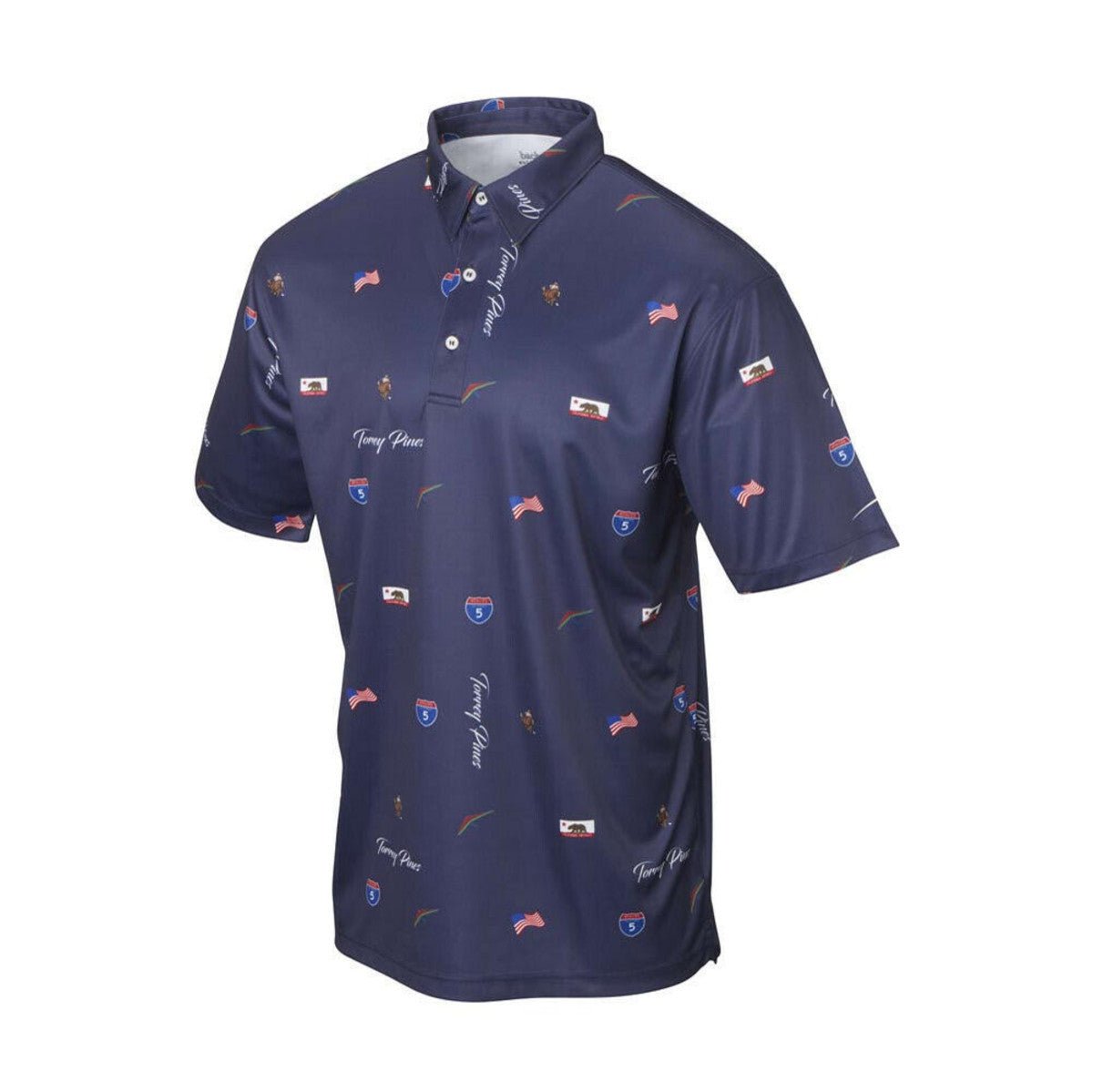 Backspin Torrey Pines Polo pays homage to the world famous golf course with bold and fun designs throughout. The stretch fabric polo features a triple button placket and self collar for a classic look and timeless style.
