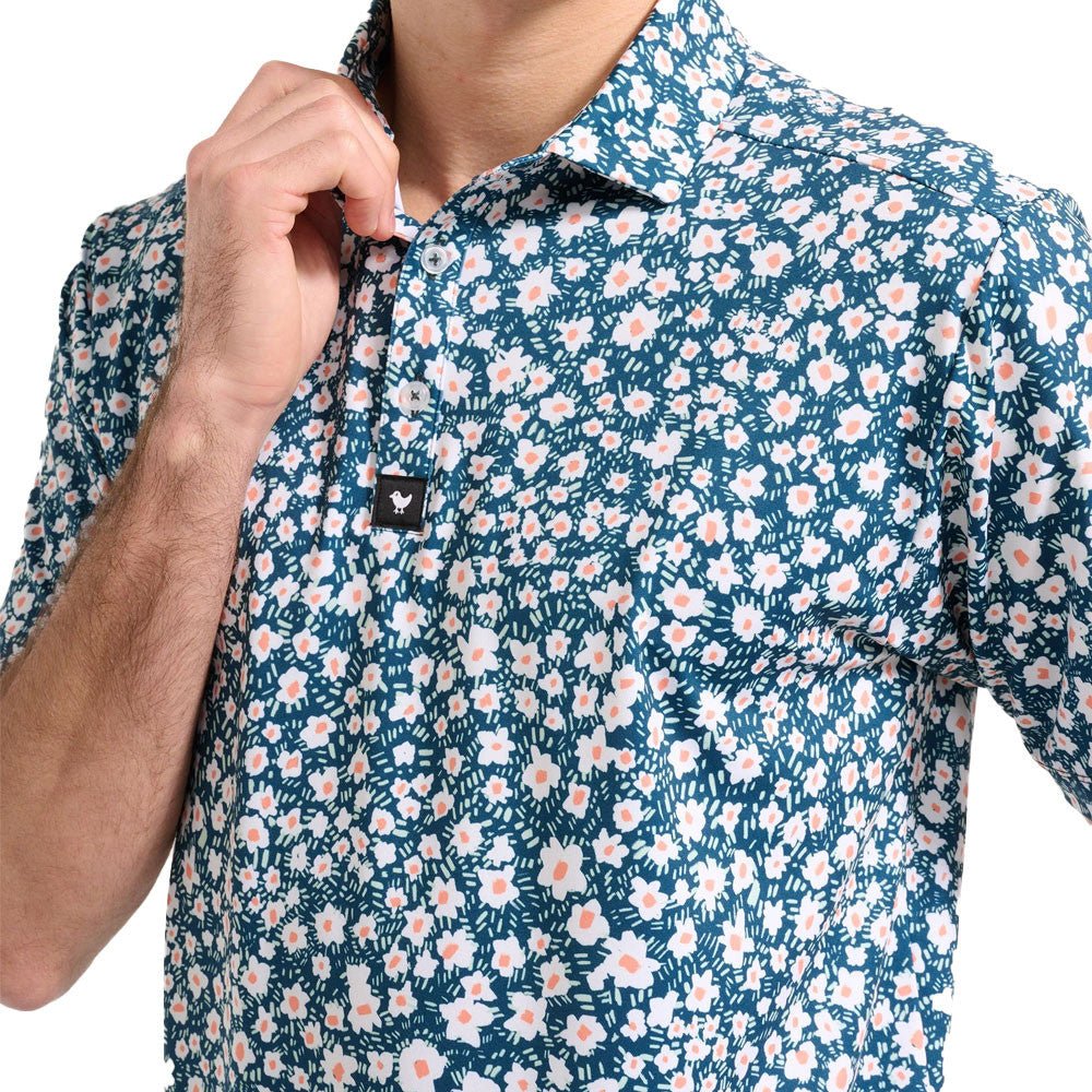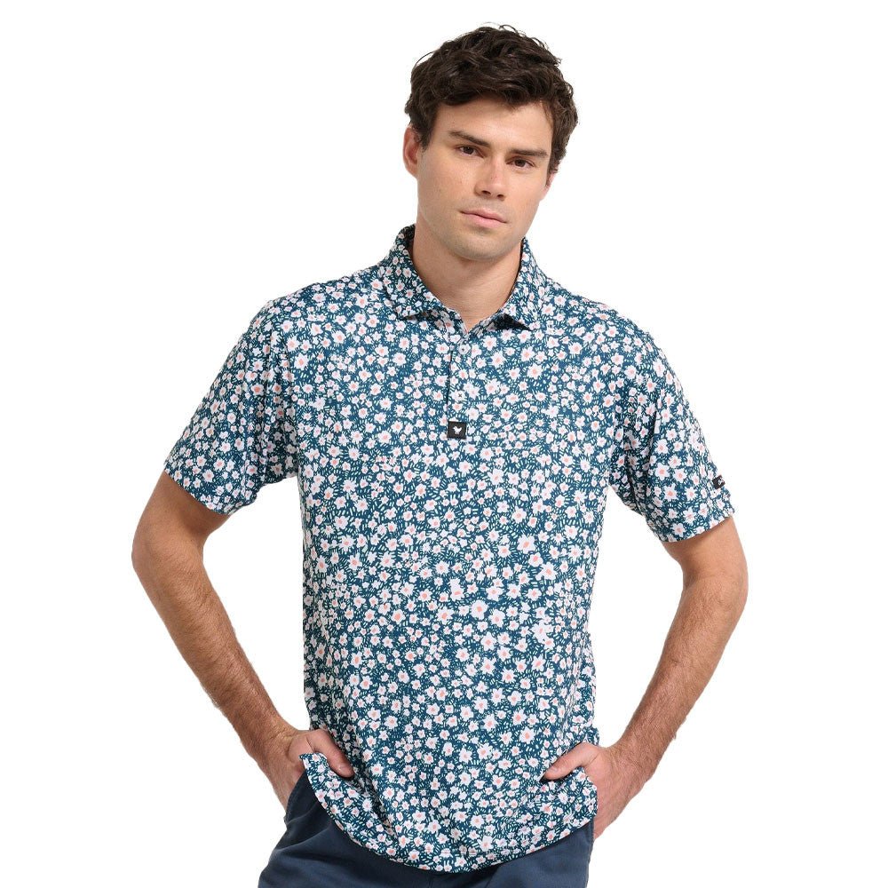 Looking for a golf polo that blend playful style with serious performance? Look no further than the Bad Birdie Bermuda Polo! This bad boy combines a bold floral print with exceptional comfort and functionality, making it a standout choice for your next round.