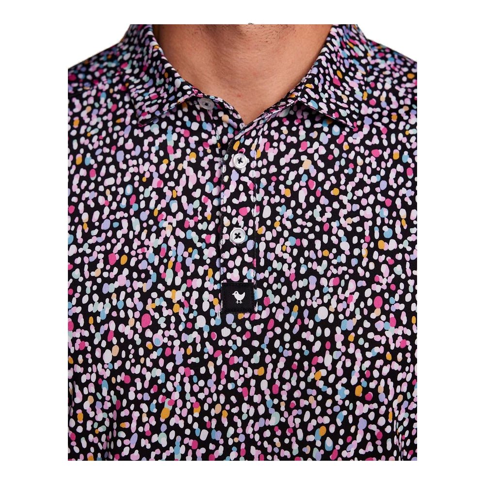 Infuse your golfing attire with a touch of fun and personality with the Bad Birdie Drippity Drip Polo, a unique and playful take on the classic polo shirt. A flashy confetti dot pattern helps you stand out in style.