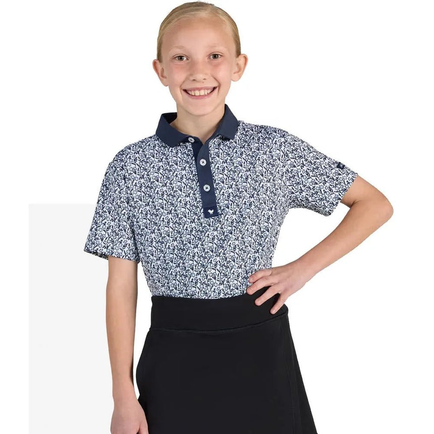 Let your junior golfer shine on the course with the Bad Birdie Junior Baby Bloomer Golf Polo, a youth-sized version of the fan-favorite adult polo packed with personality and performance. Featuring the same vibrant floral-inspired Baby Bloomer print, this polo is made with lightweight, moisture-wicking fabric to keep young players cool, dry, and comfortable through every round. With 4-way stretch and breathable construction, it's built to move with their swing while delivering all-day comfort.