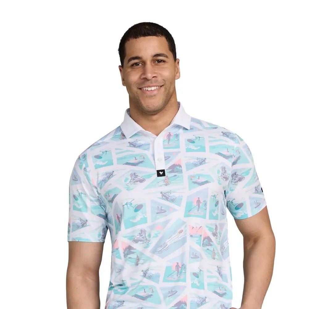 The Bad Birdie White Caps Welcome Golf Polo blends tropical vibes and tour-level tech—perfect for golfers who like to play bold and stay cool.