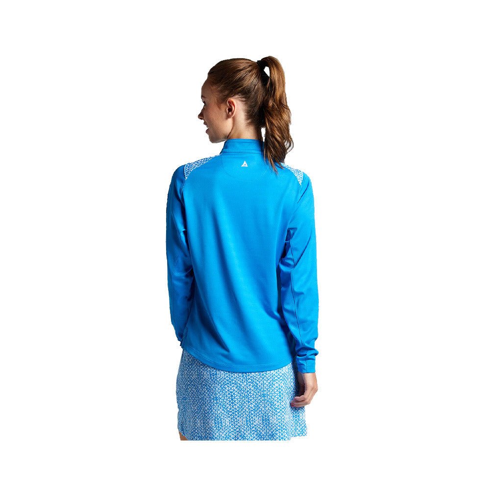 The Bermuda Sands Women’s Nola is a block patterned, long sleeve quarter zip with abstract graphics made for the golf course. It features mesh undersleeves and sun protection to keep you cool during hot days on the golf course.