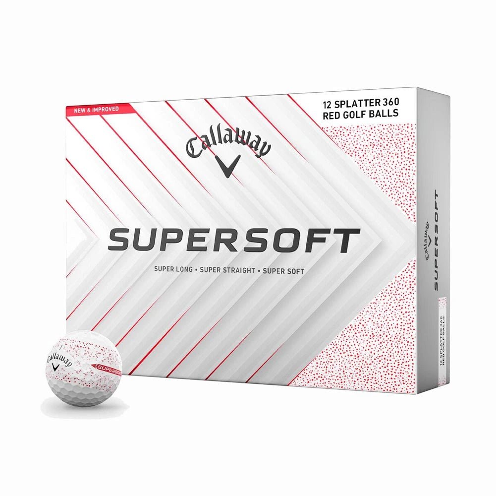 The new Callaway Supersoft Splatter 360 Golf Balls take your game to the next level with increased ball speed, exceptional soft feel, and improved control and spin from tee-to-green. Redesigned with an advanced cover, core, and construction, this is the best Supersoft you've ever played. Experience high visibility, 360 alignment along with unmatched performance and feel on every shot.