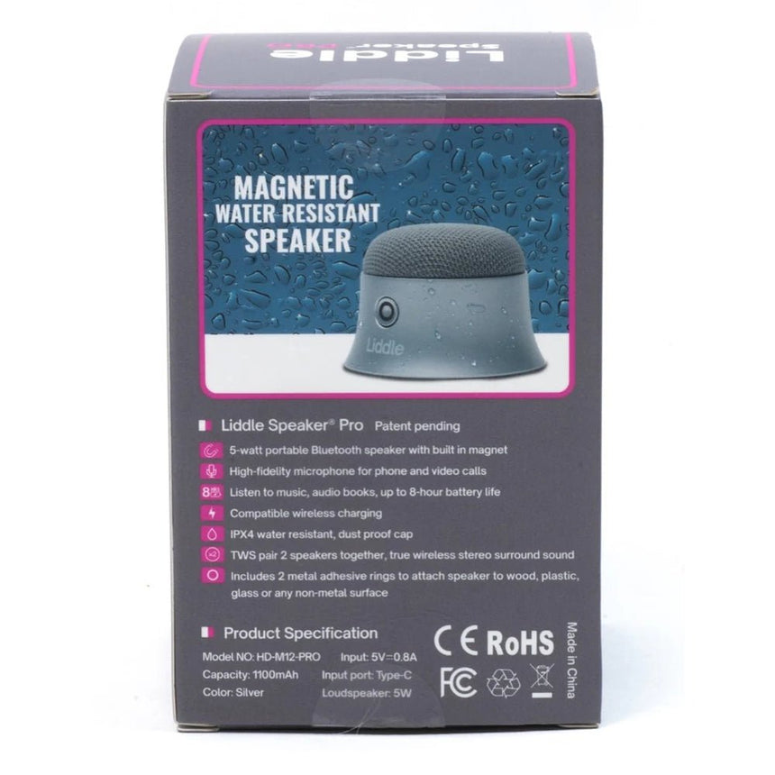 Built-In Magnet This speakers built-in magnet can magnetically attach to your refrigerator, car, toolbox, golf cart or any metal surface. The Liddle Speaker Pro can also attach to wood, plastic and glass surfaces with the self-adhesive metal rings included in the packaging.