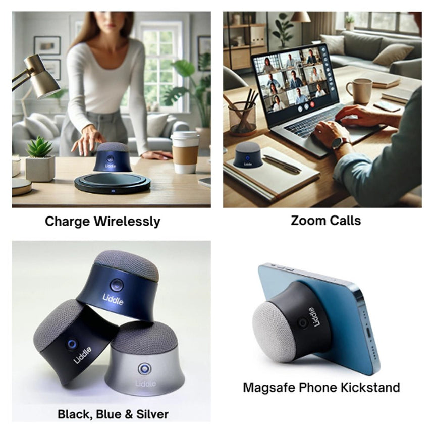 Hands Free Audio This Bluetooth speaker can attach to a Magsafe-charging area turning your phone into a kickstand. 5-watt amplifier delivers rich, balanced sound with optimized clarity. Perfect for office, travel, outdoors and home.