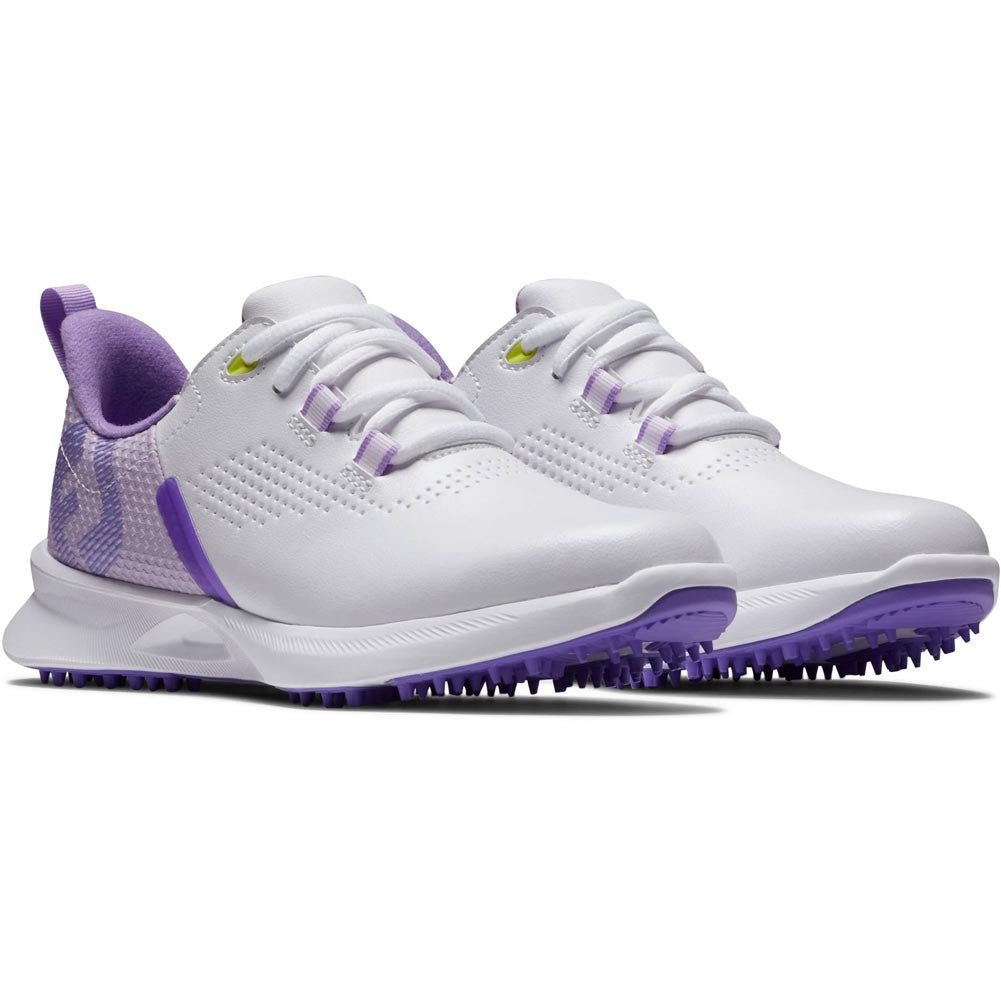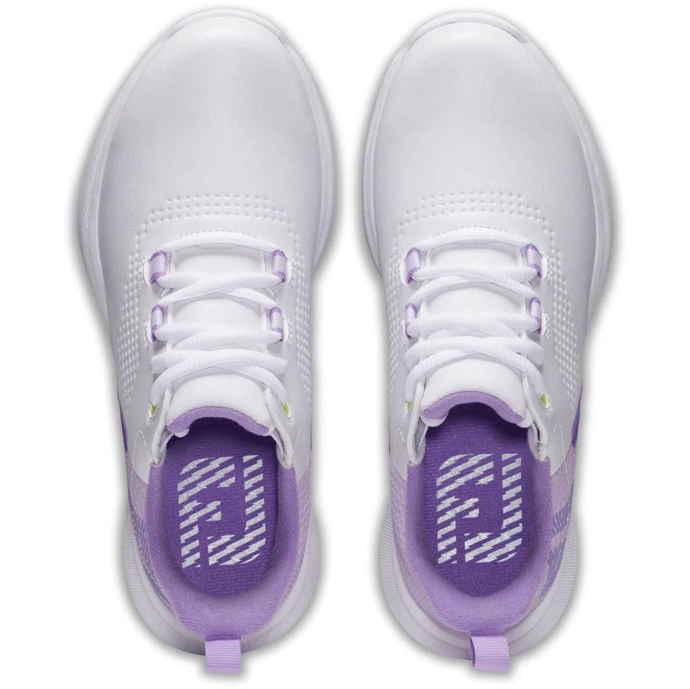 FootJoy Junior FJ Fuel Golf Shoes - Previous Season Style - White Purple / Medium / 6 ships directly from the manufacturer, usually within 5–7 business days pending any backorders.