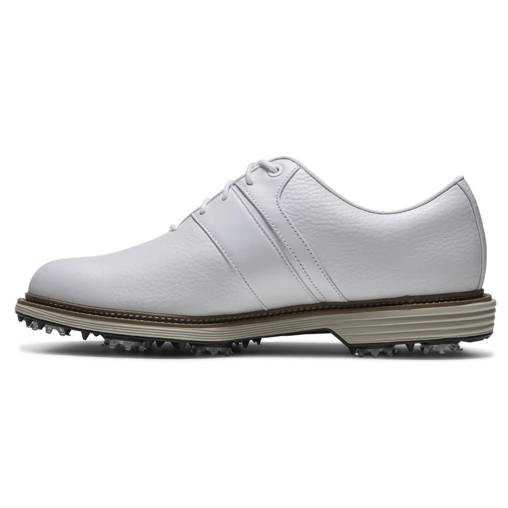 FootJoy Men’s DryJoys Premiere Series Packard Golf Shoes combine classic styling with proven on-course performance and reliable waterproof protection you expect from FootJoy. Crafted from hand-selected premium Chromoskin™ leather with rich detailing, these spiked shoes offer a timeless, heritage look that’s equally at home on the first tee or in the clubhouse. FootJoy’s expertise as the “#1 Shoe in Golf” shines through in every stitch and material choice, delivering both comfort and traditional golf shoe elegance.