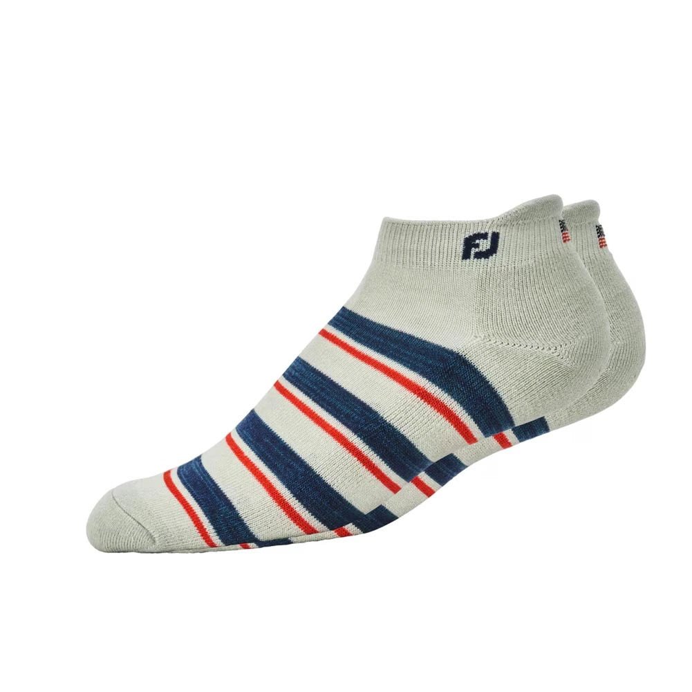 Part of the Stars and Stripes Collection, the FootJoy ProDry Roll Tab Flag Golf Sock brings American pride to every step of your round. Designed with a sleek roll tab silhouette, this sock blends performance comfort with bold, patriotic flair.