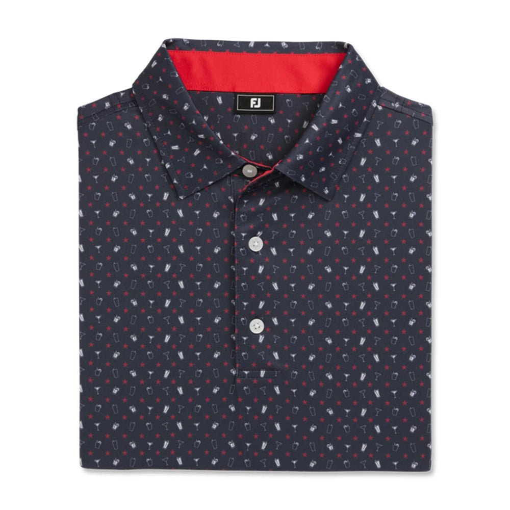 Embrace the spirit of America with the FootJoy Star Cocktail Lisle Polo, a men's golf shirt designed to celebrate patriotism and style. This shirt features a unique design that incorporates the American flag colors in a festive and eye-catching way.