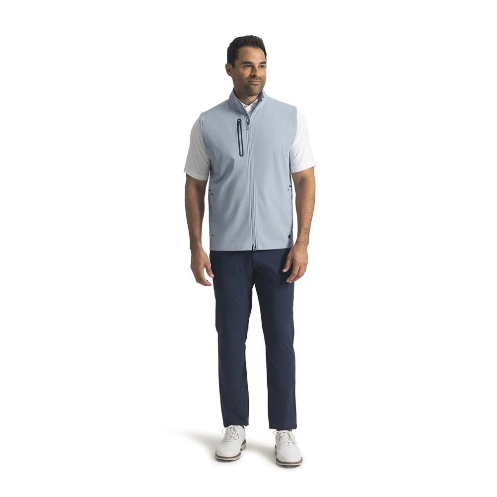 Constructed for both functionality and everyday wear, this vest features a tailored look with a two-way zipper that allows easy adjustment for putting or walking comfort. A durable water-repellent (DWR) finish helps keep you dry during mist or light rain, while anti-microbial technology works to inhibit odor build-up during play. Thoughtfully placed side hand pockets and a protected zipper chest pocket offer secure storage and added warmth, making this a versatile layer for unpredictable weather on the golf course.