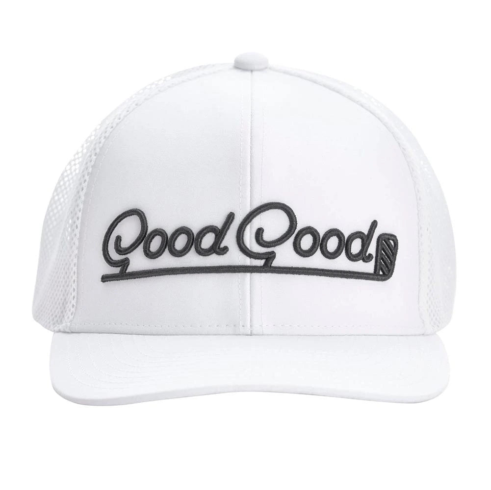 Stay sharp and stylish on the course with the Good Good Focus Trucker Golf Hat — a premium blend of comfort, performance, and attitude. Designed for golfers who bring focus and flair to every round, this trucker hat combines a structured front panel with breathable mesh backing for a classic athletic look that performs in all conditions. The adjustable snapback closure ensures a perfect fit, while the bold Good Good branding across the crown adds a confident finishing touch that stands out from tee to green.