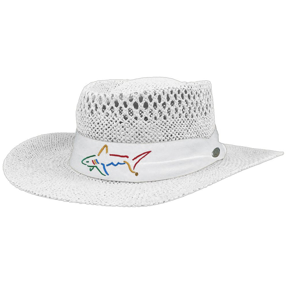 The iconic Greg Norman Signature Hat is made for warm sunny tee times on the course. It features a straw paper construction with large ventilation holes that provide breathability for the heat, as well as an all-around brim for shade and protection from the sun. A soft and stretchy sweatband on the interior provides a one-size-fits-all feel.