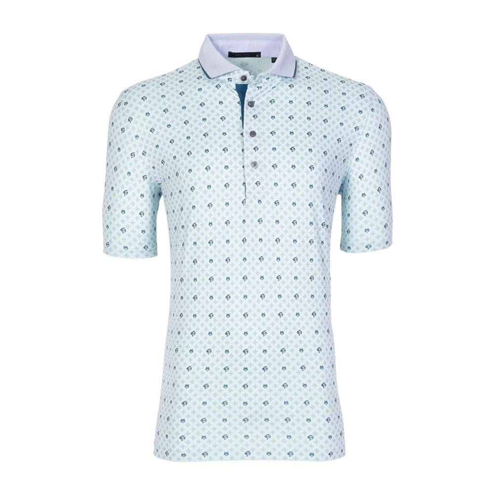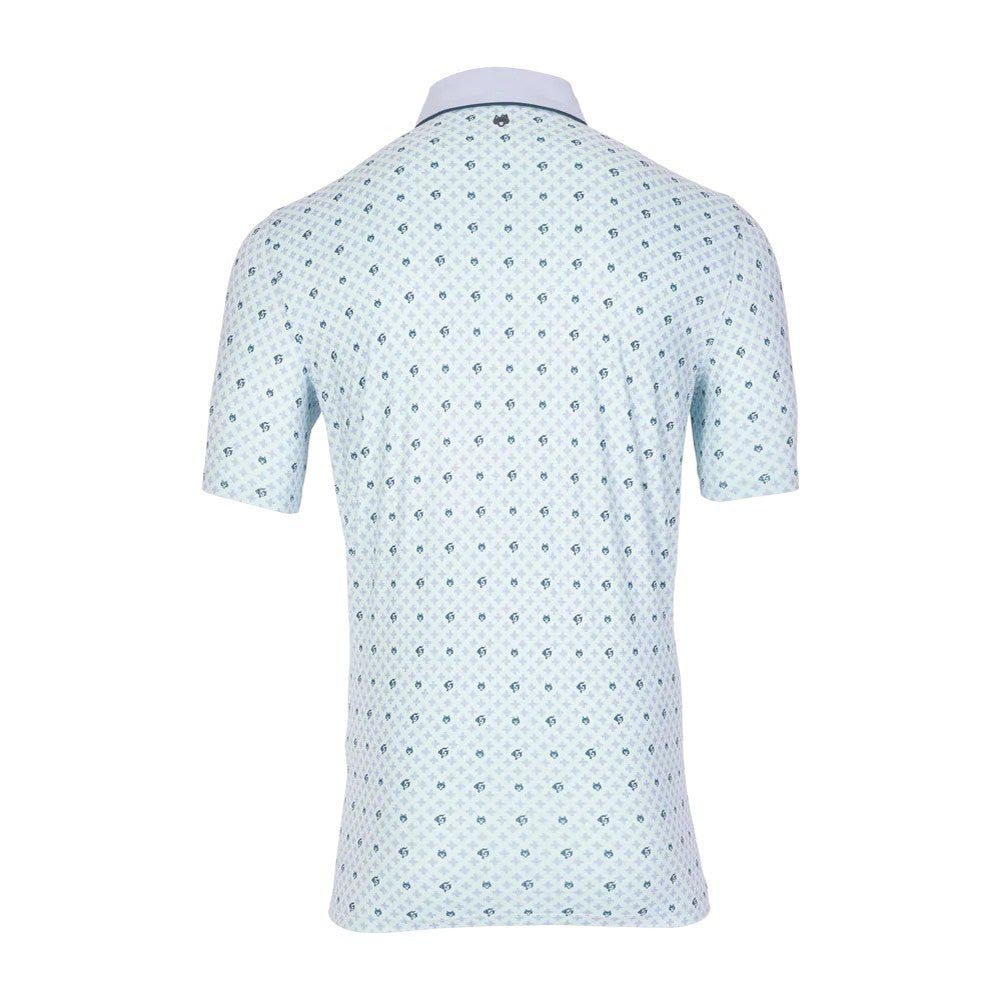 A signature Pack print, this printed polo is constructed with exceptional stretch and an innovative design that redefines sophisticated comfort. The Pack Mentality Polo is crafted from a polyester and spandex blend to deliver exceptional stretch and comfort on and off the golf course. Designed with signature Greyson motifs that include the Gothic “G,” this elevated printed polo features quick-dry and four-way stretch technology for superior performance. Detailed with a knit rib collar with a four-button contrast placket.