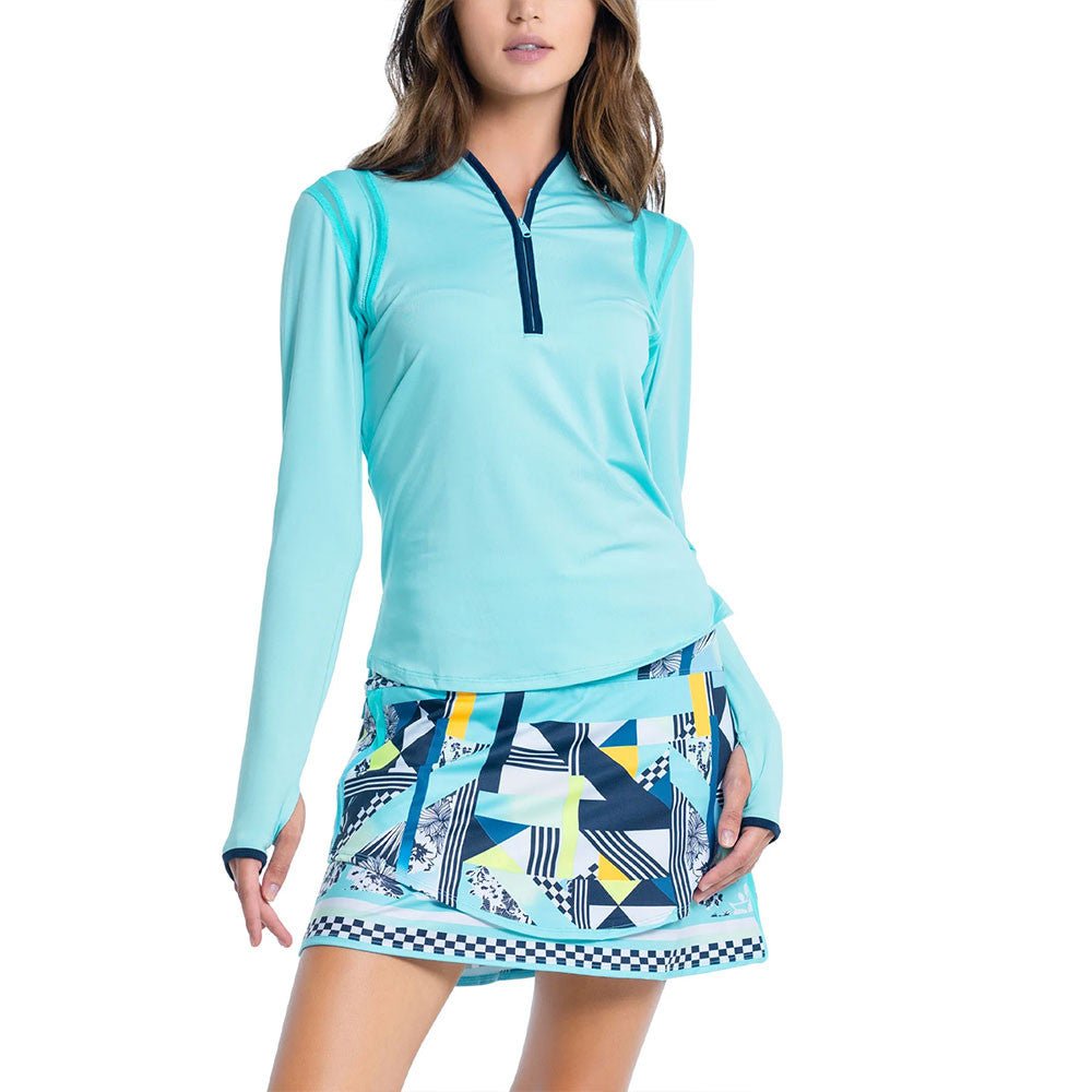 You’ll win before you even hit the court or course in this pullover that will win you compliments. A Cool Blue long sleeve, featuring modern design lines, mock collar, mesh treatment for ventilation and flattering narrow shoulders.