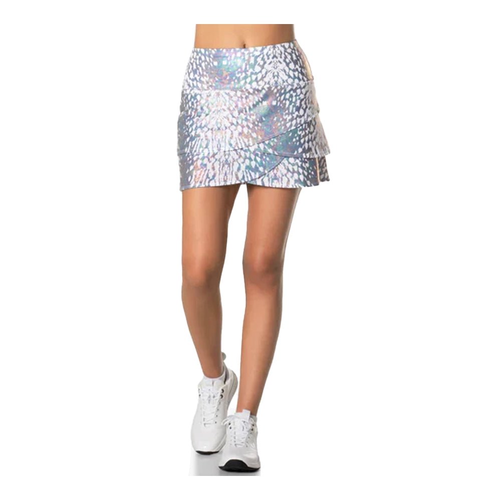 Embrace vibrant style and comfortable performance with the Lucky In Love Oil Slick Scallop Skort. This unique garment combines a built-in undershort with a flowing skirt for a playful look that's perfect on the course. Pastels are ready to play in this vibrant, iridescent skirt. The abstract watercolor print comes alive thanks to a matte shimmer finish, making your every move a parade of colors. It’s all done in our signature scallop silhouette.