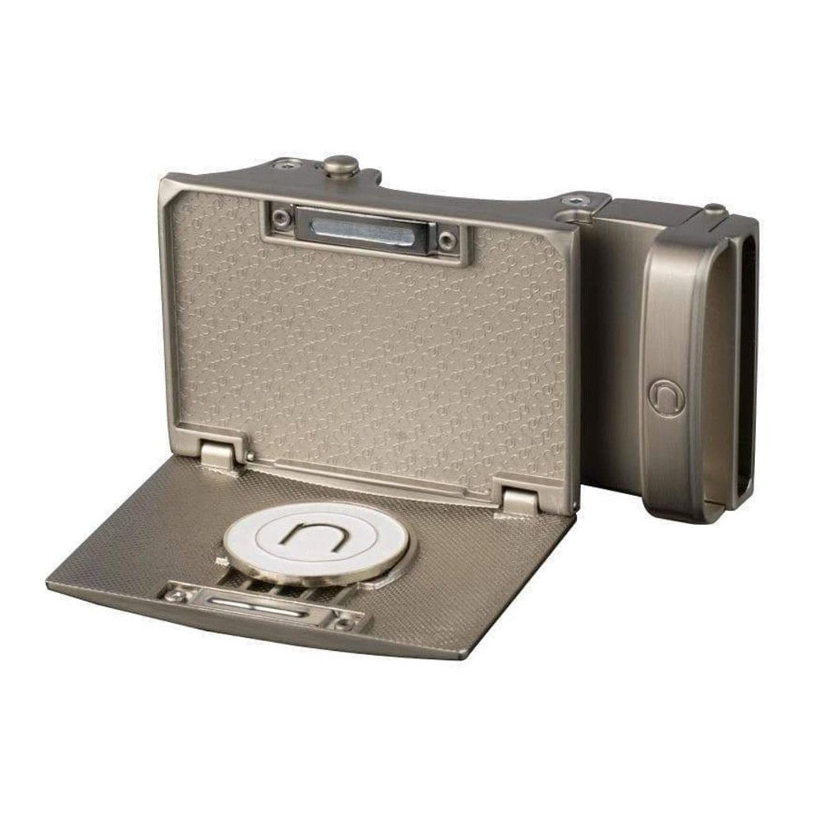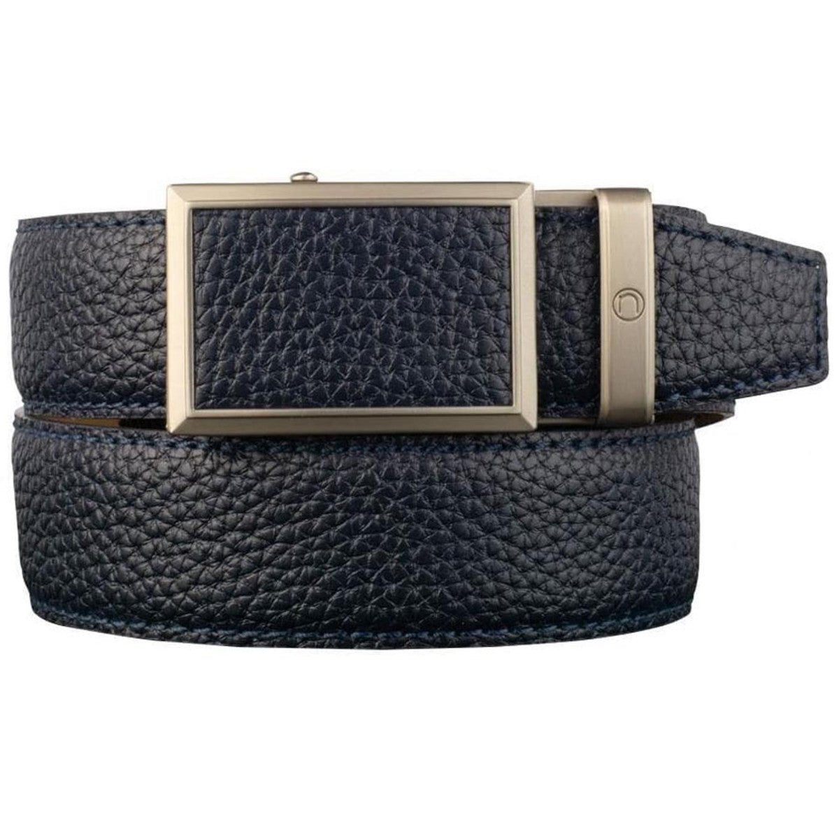 Nexbelt is the belt without the holes! In the 4th edition of the Go-In Belt, the stitching has been redesigned to match the leather strap to provide a modern look and appeal at all occasions. This ratchet belt fits up to a 45" waist and can be cut to size. The face of the belt buckle also flips down to reveal a 2-sided ball marker and a premium velvet travel bag is included.