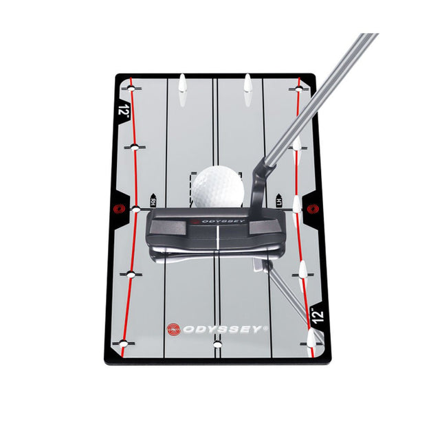 The Odyssey Putting Mirror is a training aid that instant feedback of key components in your setup and stroke that will help you improve your putting game. You get a full and clear view of your shoulder alignment at address and your path throughout your stroke. You can also see head position and get a good idea of your eye-line. The Putting Mirror also helps you align the putter face and keep it square. Open slots for tee pegs help you create drills that work on stroke path and strike position. Various widths allow the player to work on different stroke paths, from arc to straight back and thru.