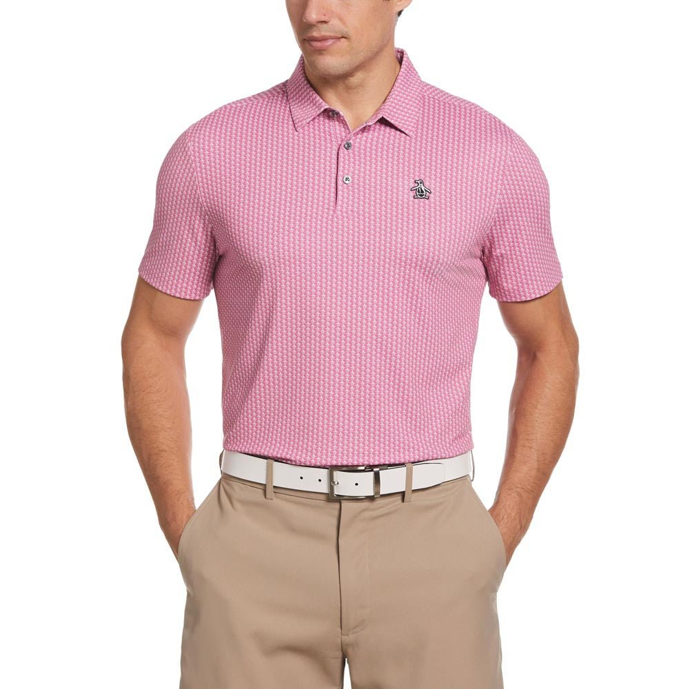 Pete's got your back, and your front, and every angle in-between when you hit the golf course in this Original Penguin polo shirt. The men's golf polo has an allover mini Pete print that makes the shirt a true original. The soft polo shirt features stretch in the fabric for powerful swings and precision putting. Single knit fabrication and moisture wicking create a lightweight, comfortable golf top you're sure to wear again and again.