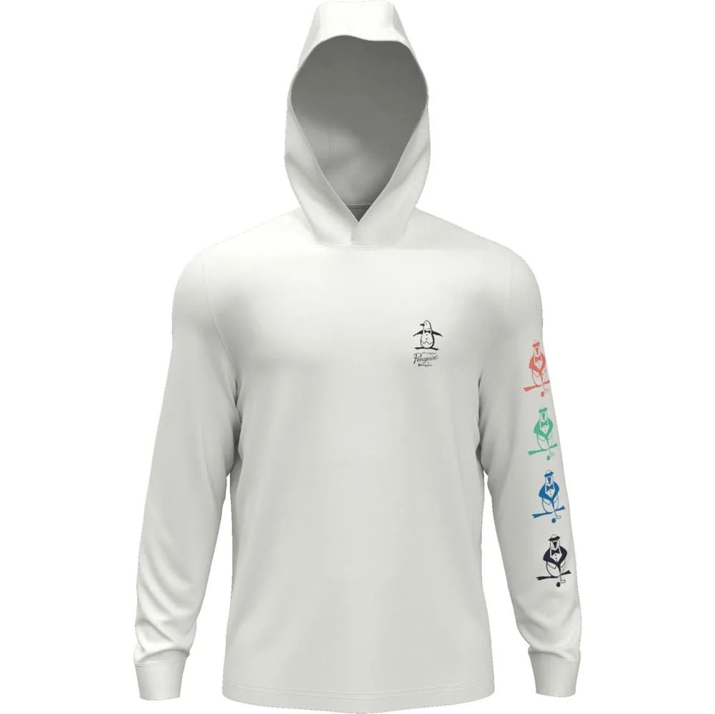 Made from recycled polyester and lightweight single knit fabric, this golf hoodie features moisture-wicking and stretch capabilities for ultimate comfort. The golf pullover also includes sun protection, and a unique Penguin Pete graphic down the arm for a sporty touch.
