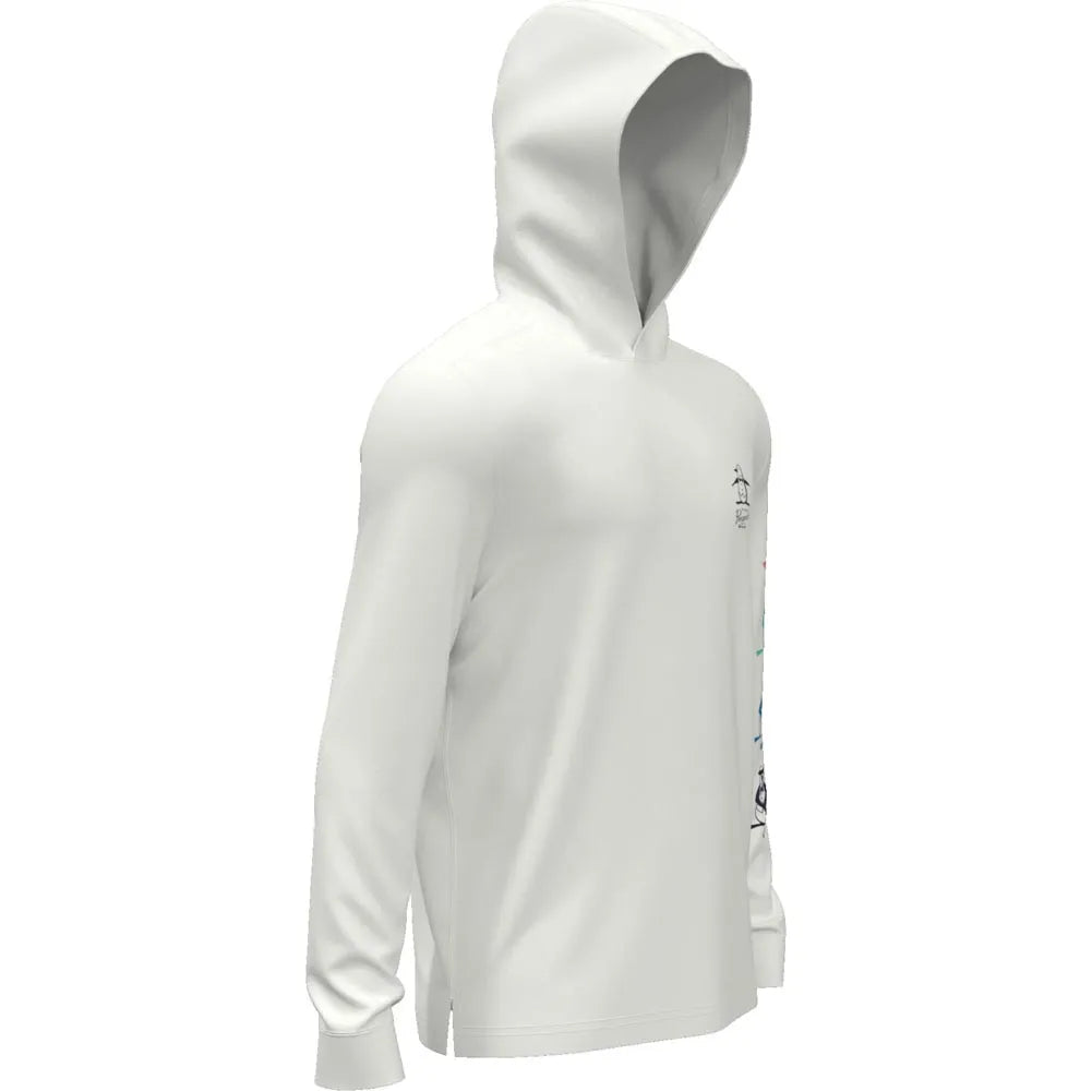Channel your inner golfer with a touch of playful style in the Original Penguin Novelty Graphic Golf Hoodie. This versatile hoodie seamlessly blends comfort and performance, making it a perfect choice for both on and off the course. This lightweight golf hoodie is a breathable and stretchy making it a viable option for those chilly tee times that warm up throughout your round.