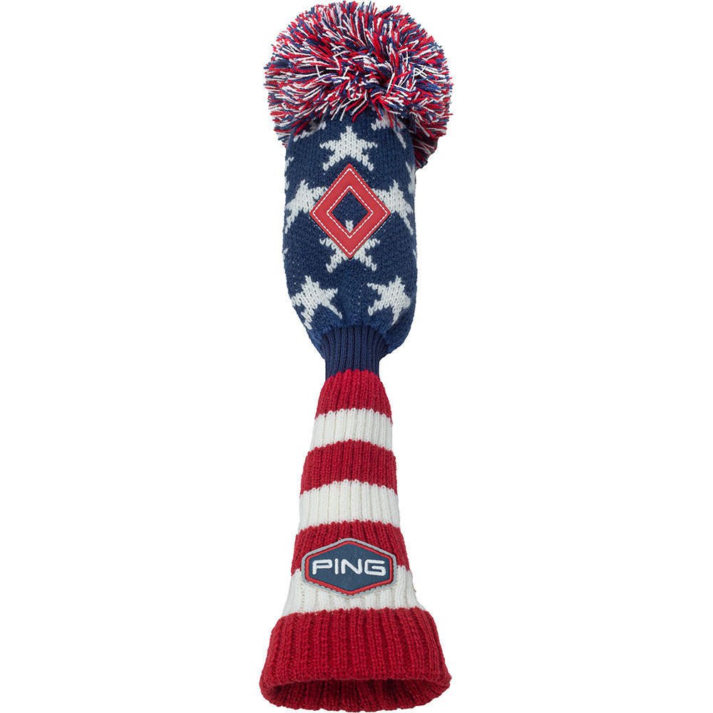 The Ping Liberty Knit Fairway Wood Headcover features a patriotic stars and stripes pattern in a traditional knit construction.