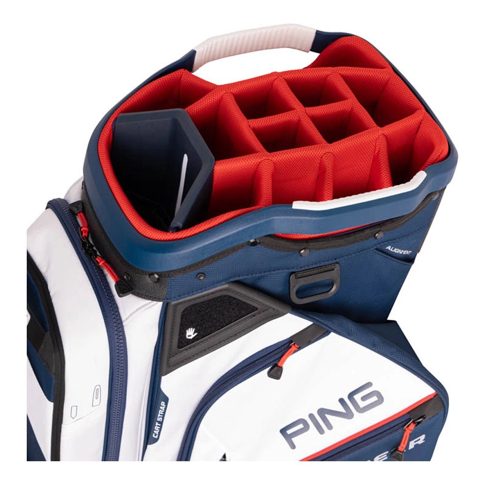 15-Way Top The re-designed top provides larger padded compartments to protect clubs individually, making organization, removal and replacement easy.