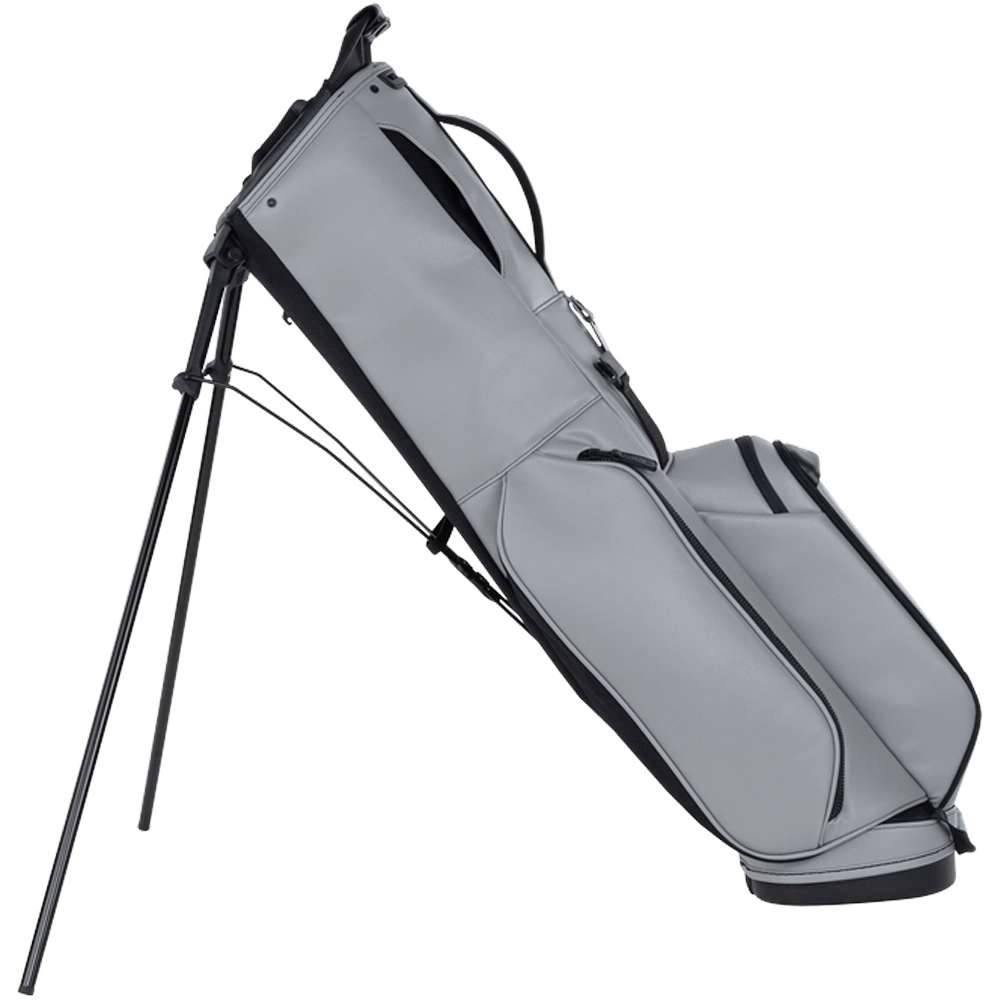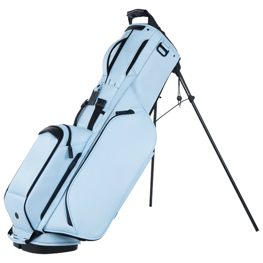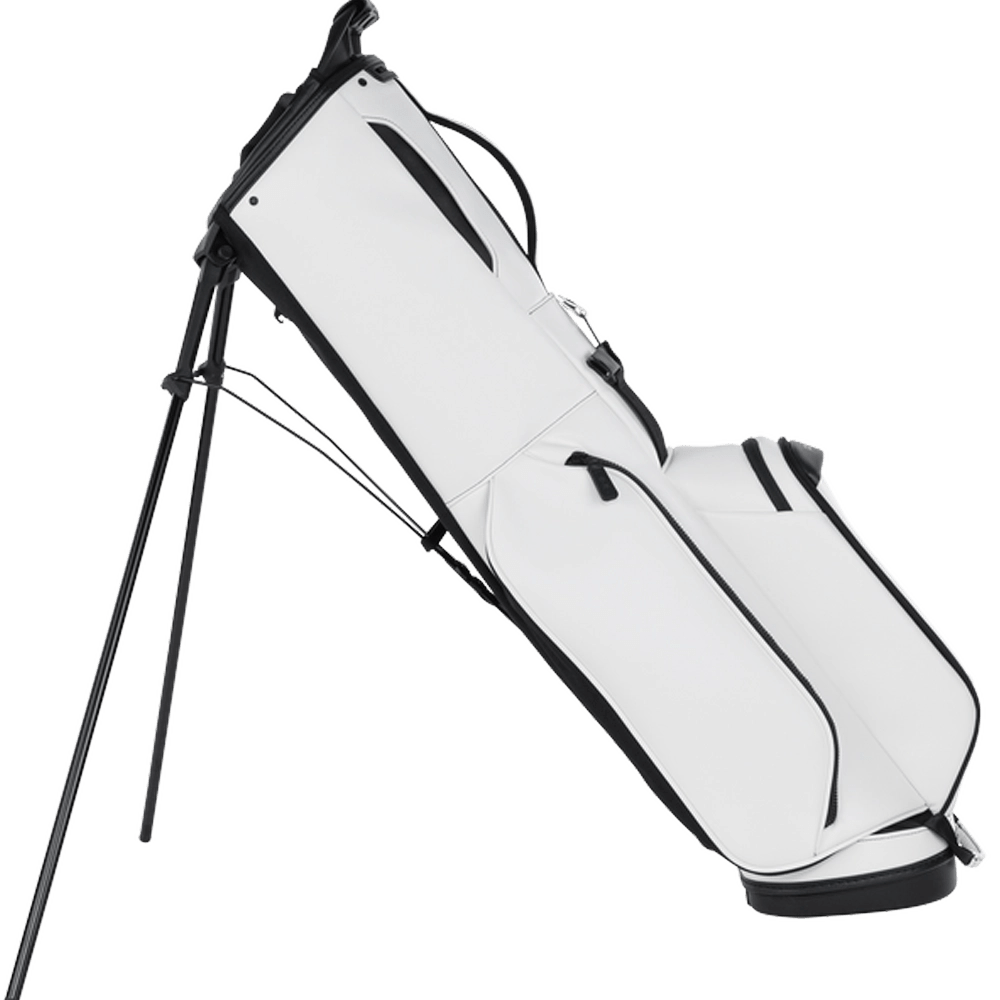Crafted from premium synthetic leather, the PING Reserve Stand Bag provides weather-resistant protection and an upscale look that stands out on the course. A five-way top with full-length dividers keeps your clubs neatly organized, while multiple zippered pockets—including a valuables pouch and insulated cooler pocket—provide ample storage. The padded dual-strap system ensures comfortable carrying, and the sturdy carbon-fiber stand legs deliver stability on any terrain.