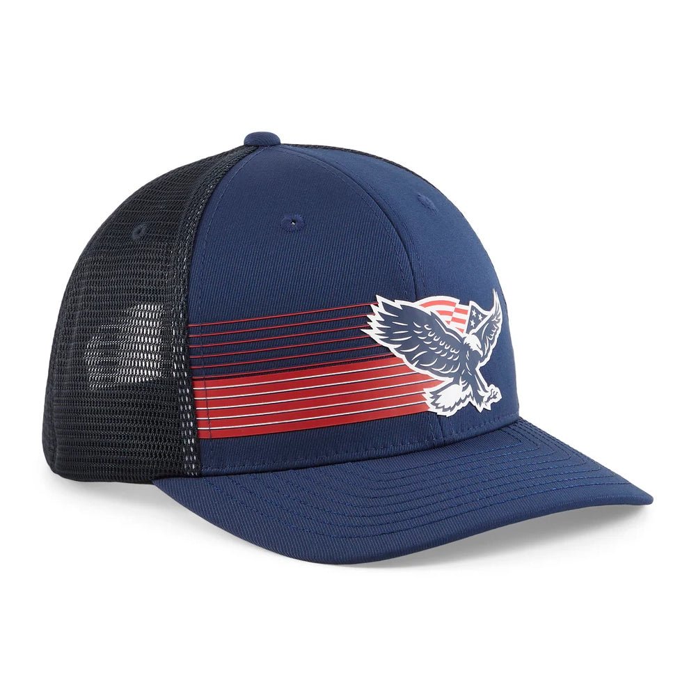 This trucker hat from Puma Golf combines a classic trucker design with moisture-wicking technology and a stylish eagle graphic, making it a comfortable and functional choice for golfers.
