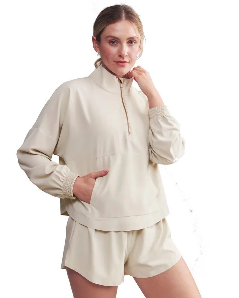 The Rhone Women's Mirage Anorak Golf Jacket is the ultimate blend of style, performance, and weather protection for the modern golfer. Designed with a lightweight, water-resistant shell, this jacket keeps you dry and comfortable during unpredictable weather conditions. The breathable fabric ensures optimal airflow, while the adjustable hood and half-zip design provide customizable coverage and ventilation. Whether you're teeing off in breezy conditions or layering up for a cool morning round, this anorak is built to keep you moving in comfort and style.