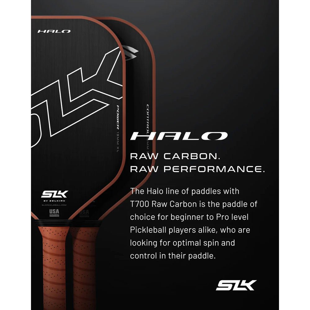 The Halo line of paddles with T700 Raw Carbon is the paddle of choice for beginner to Pro level Pickleball players alike, who are looking for optimal spin and control in their paddle. The Halo is available in our 16mm Control Core or 13mm Power Core to give you your choice of performance while also giving you maximum spin in both models.