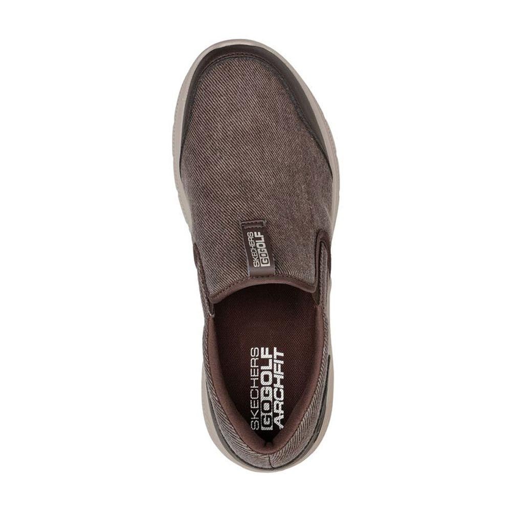 Walk the course in style and supportive comfort with Skechers Relaxed Fit®: GO GOLF Arch Fit Walk™. This spikeless water-repellent design features a slip-on waxed canvas and synthetic upper with a removable Arch Fit® insole, lightweight ULTRA GO® cushioning and a Goodyear® Performance Outsole.
