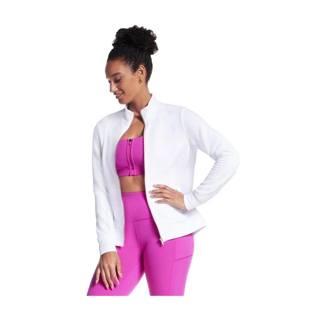 Full Zip Mock Neck Jacket – Metallic zip front adds a polished finish for versatile styling.
