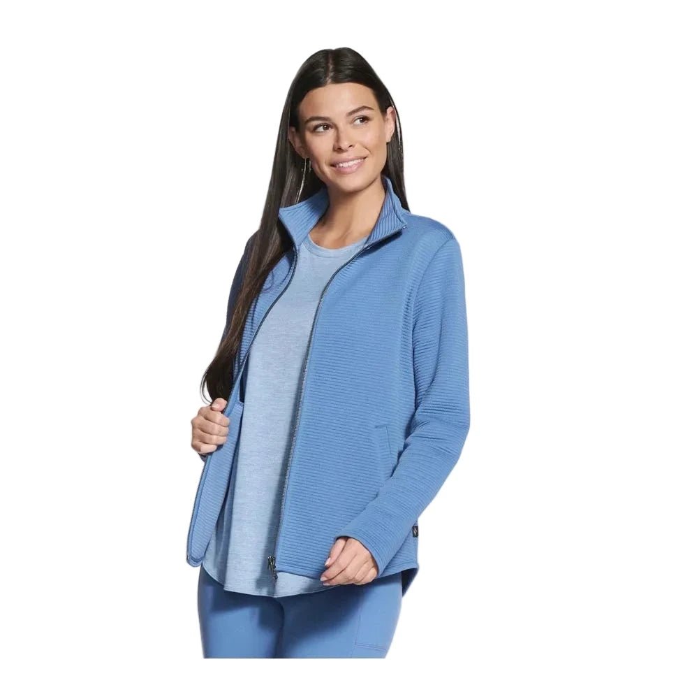 Stay comfortable and polished from the course to your everyday routine with the Skechers GO WALK Shine Golf Jacket. Designed for active, all-day wear, this sporty full-zip layer is crafted from breathable Soft Knit Ottoman rib fabric made with recycled materials. A mock-neck silhouette, flattering scooped hem, and refined detailing deliver a sleek look that moves effortlessly with you.