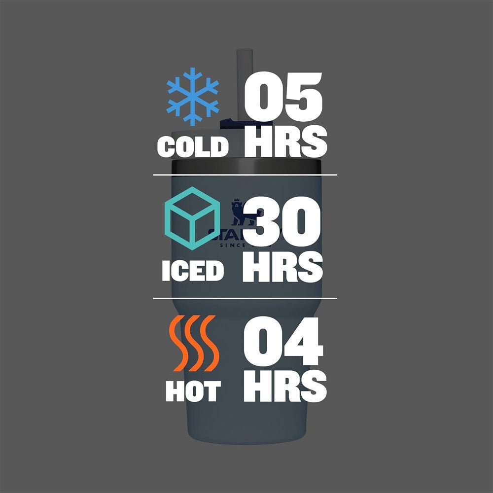 Long Lasting Cold The Adventure Quencher Travel Tumbler keeps drinks cold for 5 hours, hot for 4 hours and iced for 30 hours.