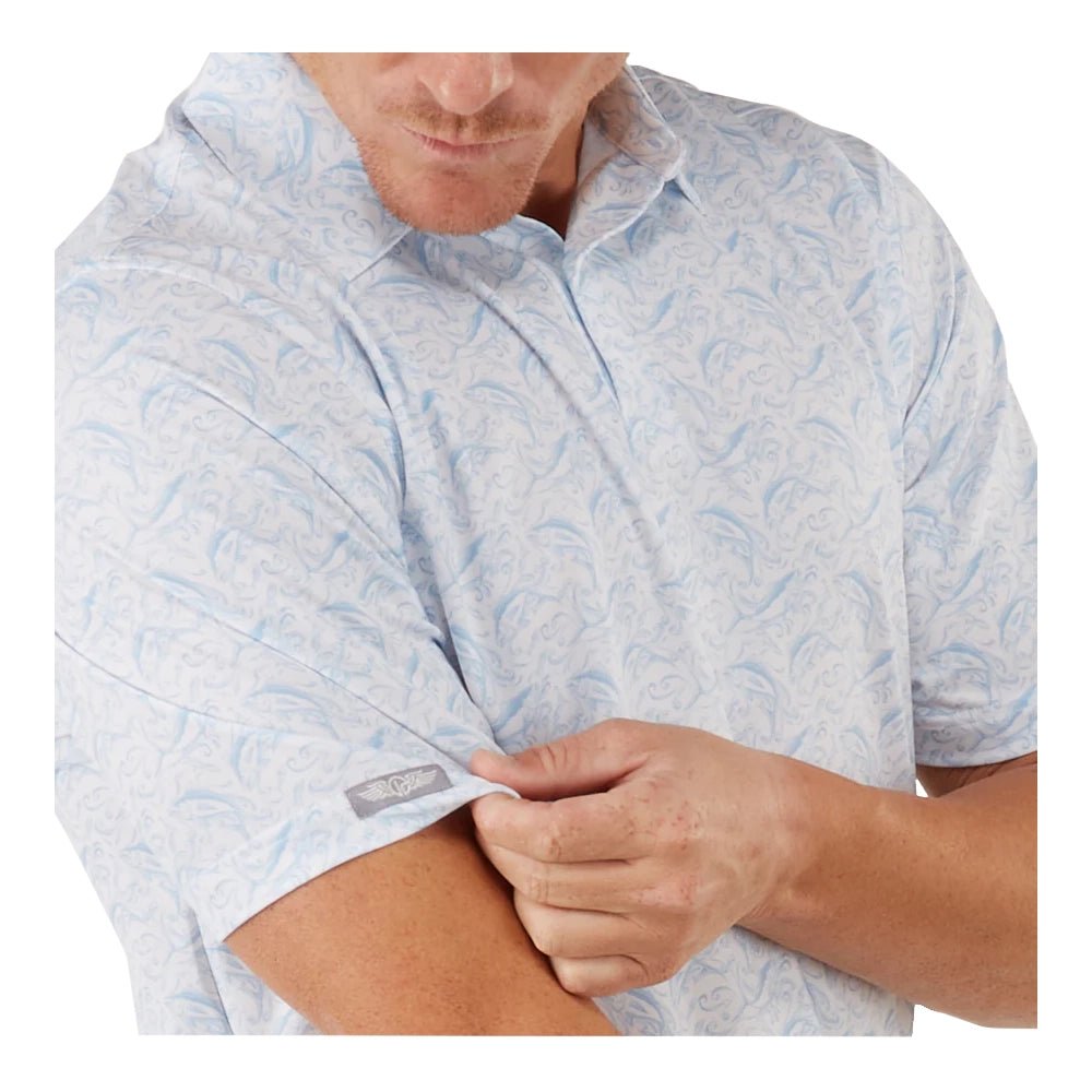 Look sharp and feel confident on the course. The Ahi Polo is covered in a subtle Ahi tuna print and made with performance ready jersey. This polo is crafted from high-performance fabric, designed to provide exceptional comfort, moisture-wicking technology, SPF 50+, and a touch of elegance, making it a valuable addition to any golfer's wardrobe.