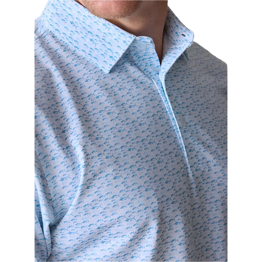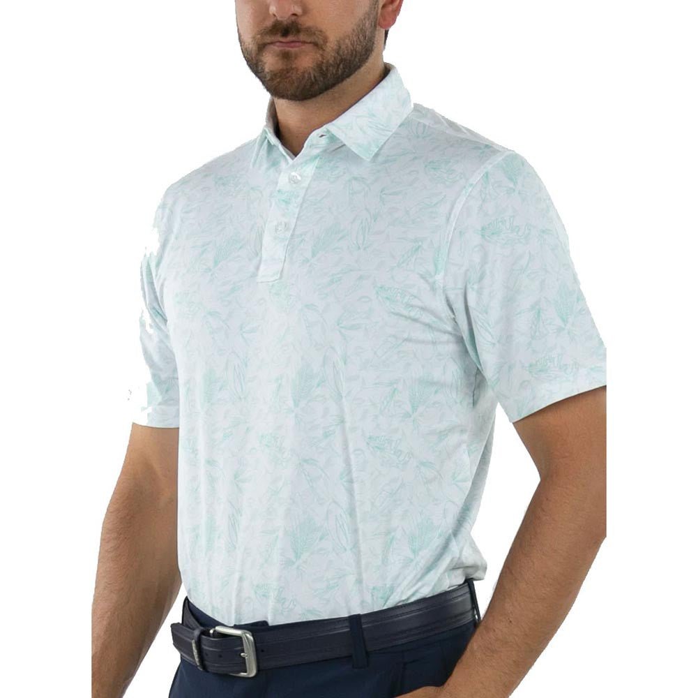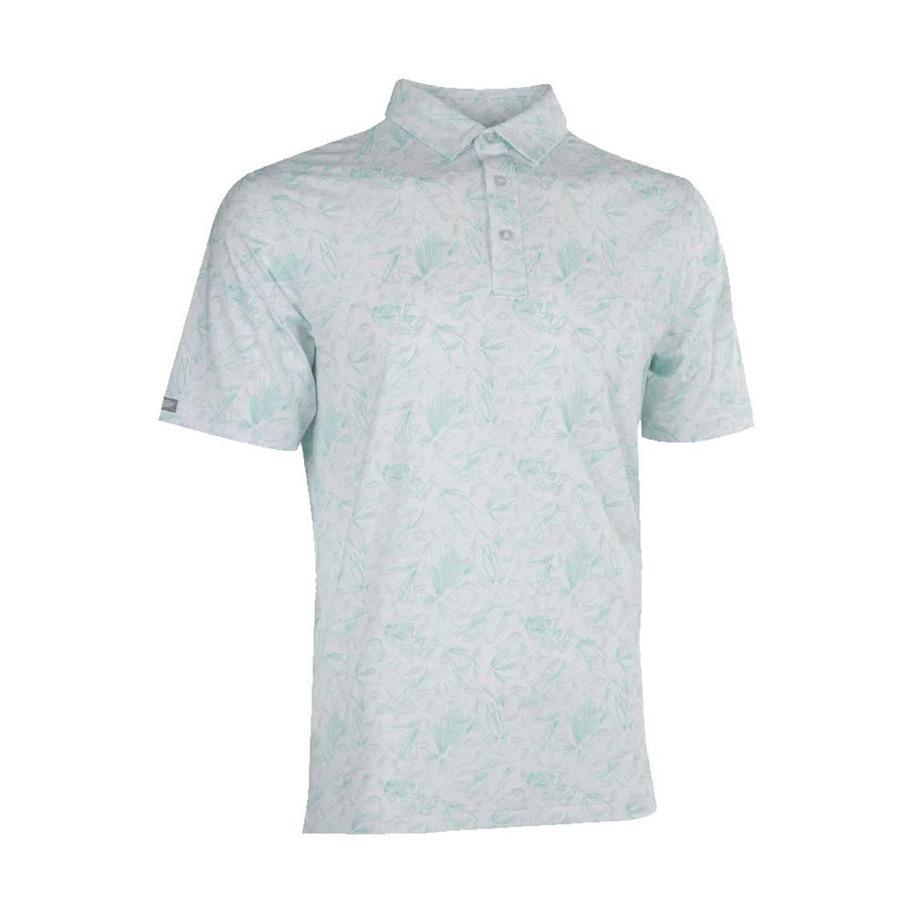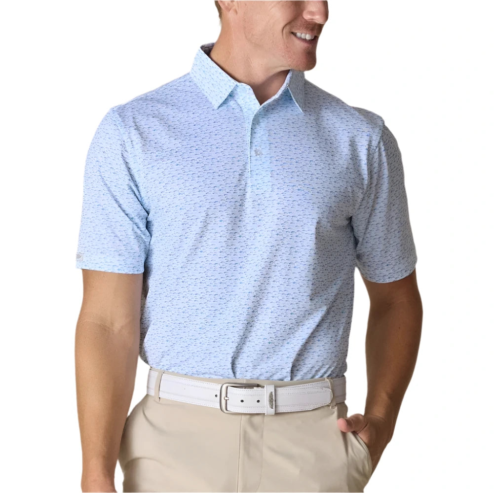 Go for the big catch with the Angler Polo! Covered in a subtle line print made up of fishing hooks, bait and lures.