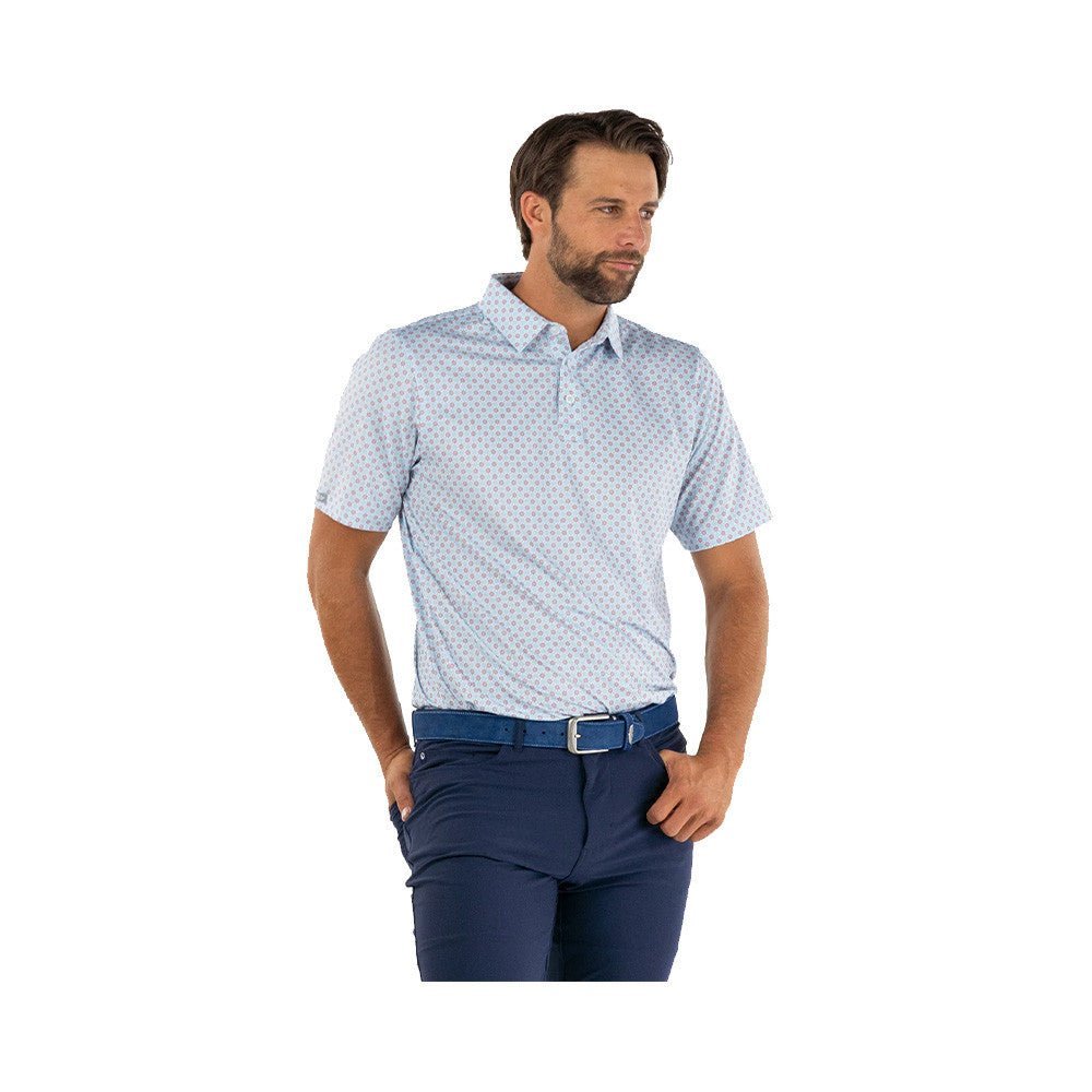 The Straight Down Aster Polo sports the perfect floral print for the guy who doesn't really want to wear flowers. This eye-catching geometric design stands out without being loud. Moisture-wicking performance fabric with an odor-control finish keeps you feeling fresh while a self collar and 3-button placket keeps you looking good from the 18th green into the clubhouse.