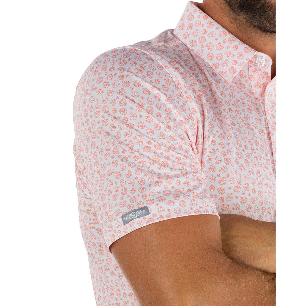 The Straight Down High Roller Polo is a versatile shirt that can be worn anywhere, but excels on the course. Made to not interrupt your game in any way, the High Roller polo is extra-stretchy and features an all-over dice print that may be just what you need for a night at the casino. The High Roller Polo is designed with a self collar and three button placket to provide a more comfortable and stylish version of what you’re already used to.