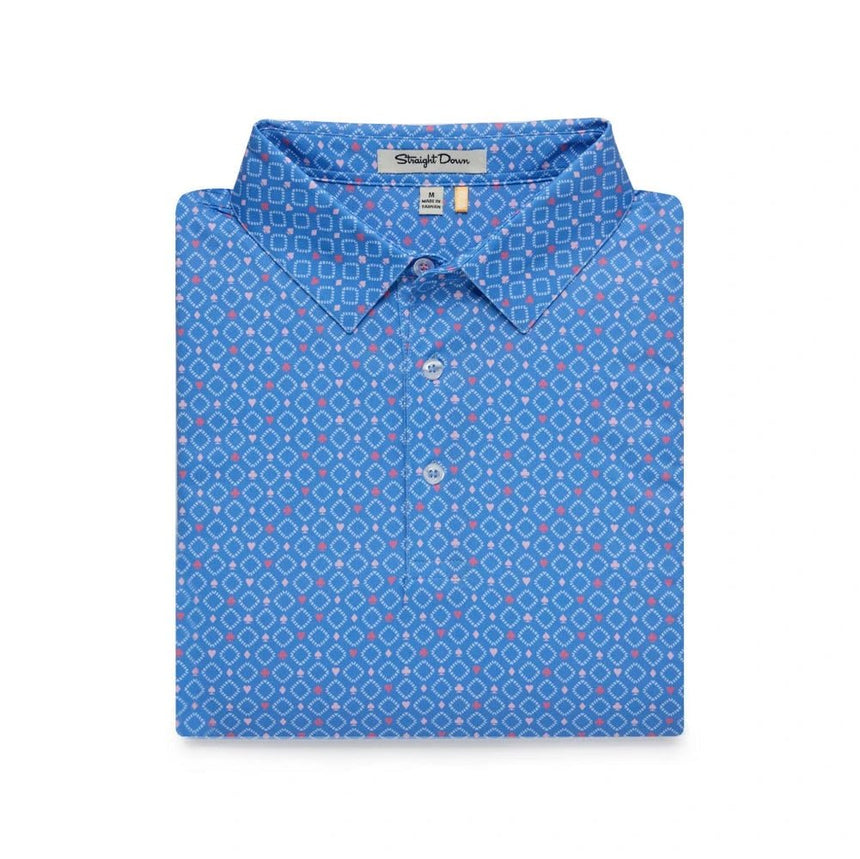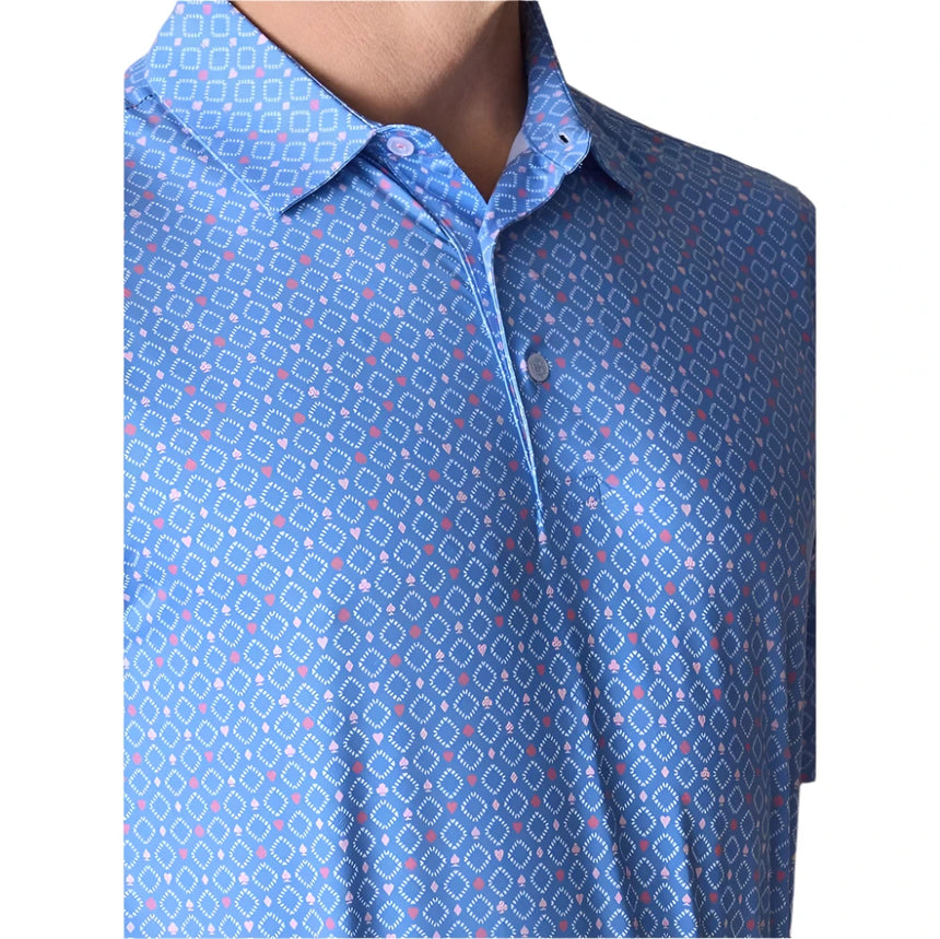 Make a statement on the course with the Moneymaker Golf Polo, featuring a bold all-over print inspired by the suits of playing cards. Designed for both style and performance, this polo is crafted from lightweight, breathable micro-pique fabric, ensuring you stay cool, comfortable, and flexible throughout your round.