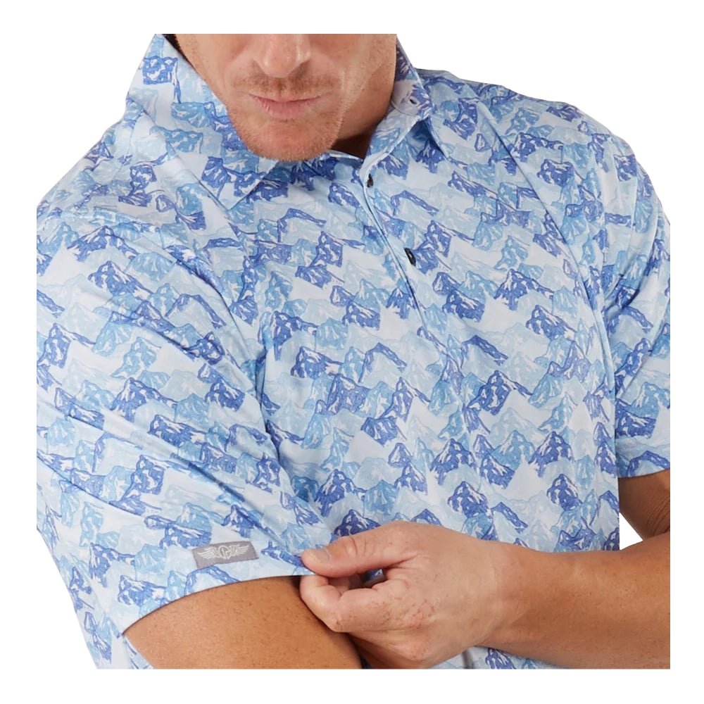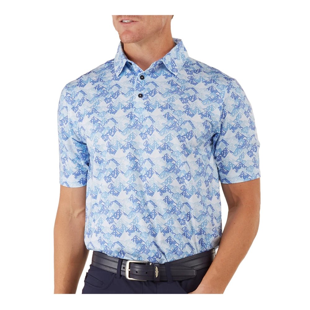 Look sharp and feel confident on the course. The Mountain High Polo is covered in a print inspired by the Rocky Mountains and is made from performance ready jersey. This polo is crafted from high-performance fabric, designed to provide exceptional comfort, moisture-wicking technology, SPF 50+, and a touch of elegance, making it a valuable addition to any golfer's wardrobe.